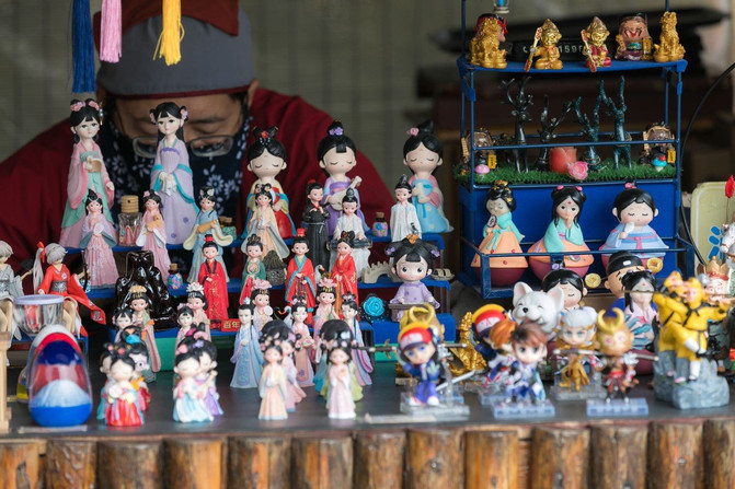 身着古装吹糖人的、捏面人儿的,放佛走进了画中世界!