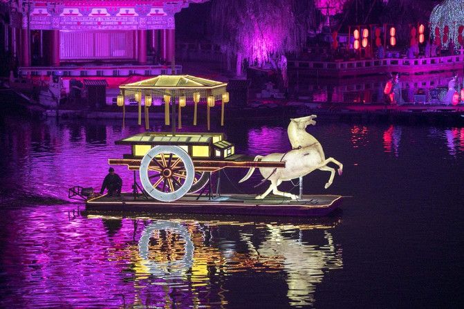 夜游自然少不了看灯、看演出、体验游船。夜晚的游船和白天的游船不是一个感觉。人在船上坐,船在画中游,体验一场声光电与大宋文化的交融!
