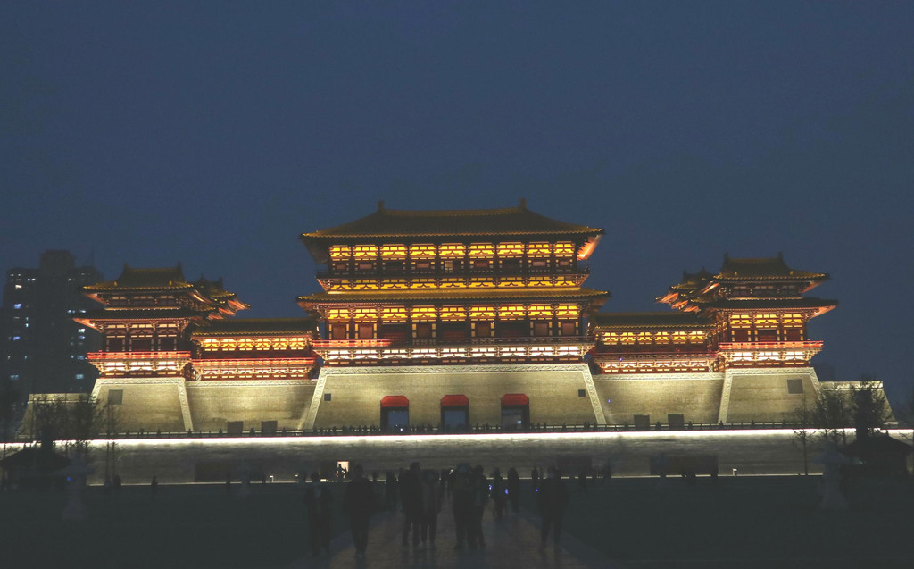 在洛阳的第三天早上看电视时得知疫情在西北几个地方肆虐决定结束行程,离开洛阳前走了一趟隋唐洛阳城国家遗址公园,里面有武则天统治时期的应天门、天堂、明堂,虽然是现代在原址修建的,但新盖的应天门气势宏伟、宫殿(明堂)宝塔(天堂)富丽堂皇,夜晚灯光下有着古色古香的韵味。