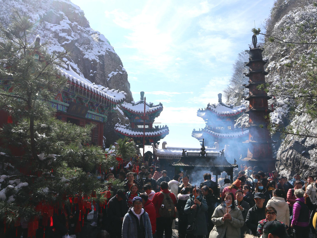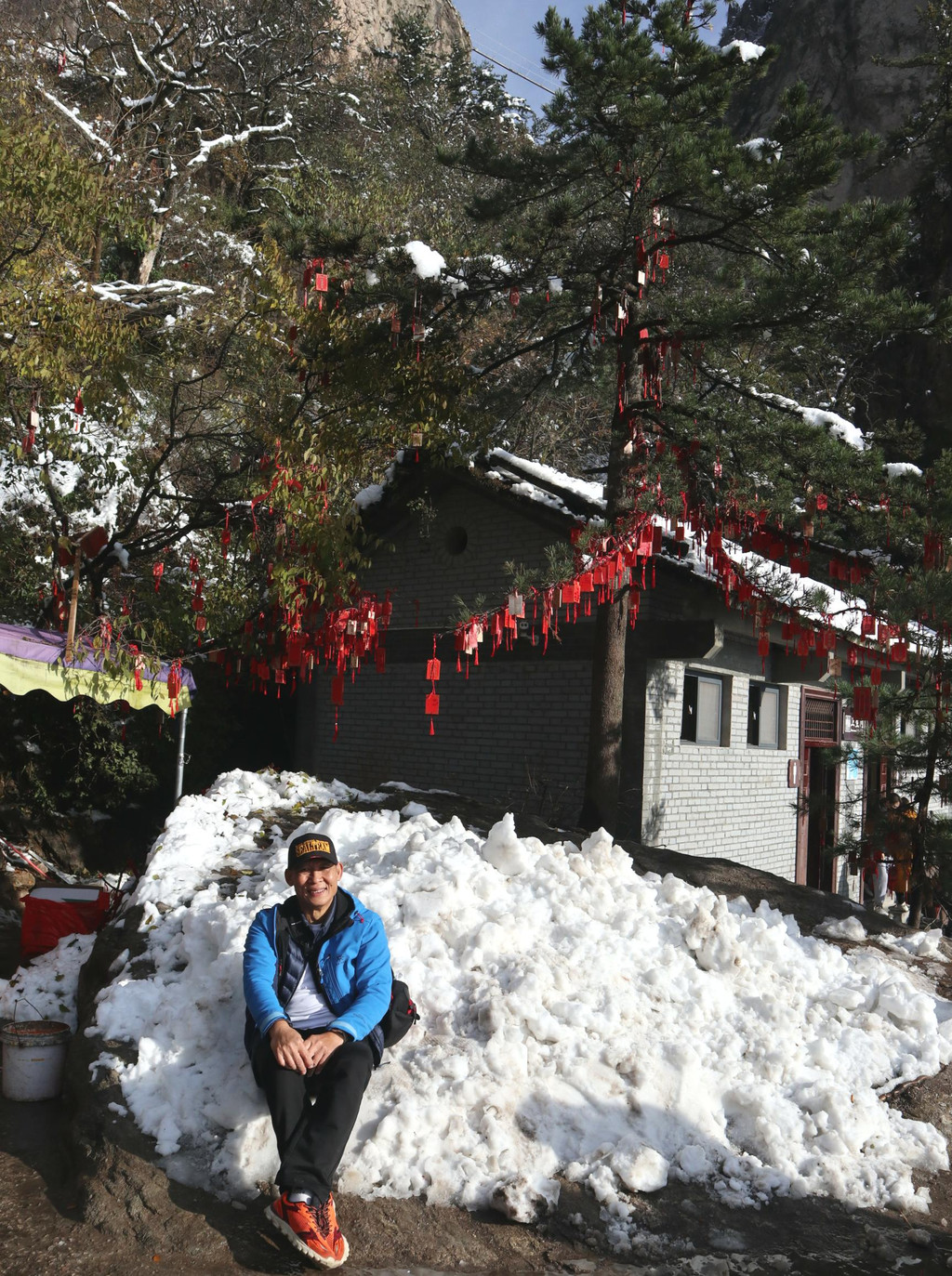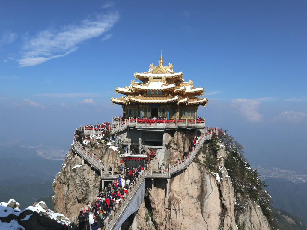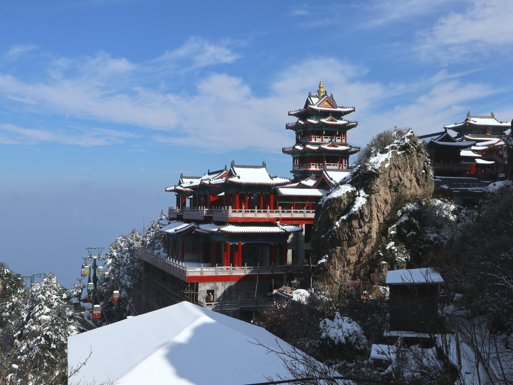 第四日早上离开开封,乘坐火车到洛阳转乘班车下午抵达栾川县。在栾川的第二天游老君山,选择走老人家线路:从山下坐云景索道(上行)——峰林索道(上行)——十里画屏栈道——马鬃岭——玻璃观景台——南天门——66级台阶——金殿道观群——下山结束游程。因昨晚山上下了一场雪,使到老君山冰雪雾淞节提早来到,令我们有机会邂逅美丽的冰雪世界。