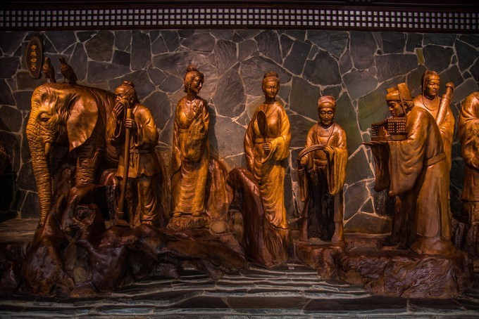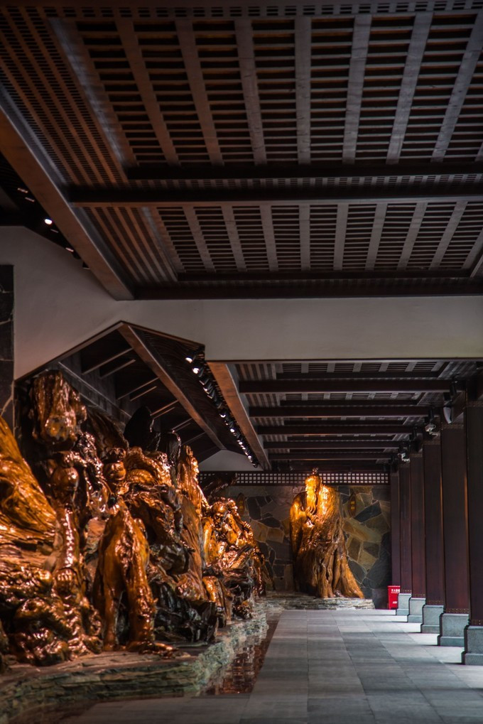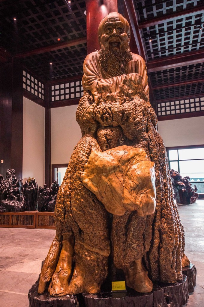拾阶而上,建筑面积三千平方的“醉根天工博物馆”豁然眼前。游园的过程中,同伴的惊叹声就没断过,惊叹于工艺的精美,惊叹于作者的伟大,这一次的经历对于我来说也是一个震撼,应为这里的雕塑是有生命的!这里的建筑都是汉唐风格,仿佛一座“江南的长安城”。
