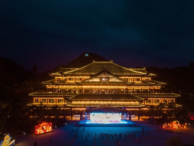 禅音月色将灯光与典雅建筑、植物园艺、幽静曲水等相融,营造虚实结合、美轮美奂的意境。为您献上一场不一样的“禅意佛国、诗画江南”梦幻震撼的“根宫夜宴”!