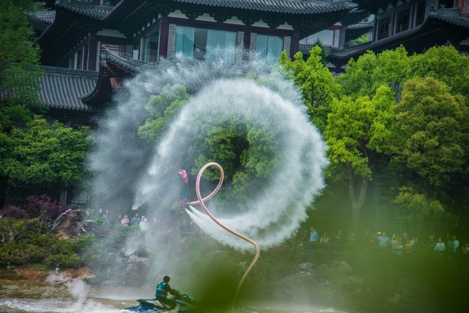 水上飞人在震撼磅礴的气势中奏响了春的华彩乐章,在湖面上翻飞,旋转,卷起千堆雪,舞出春天的力量,引起了所有观众的共鸣。