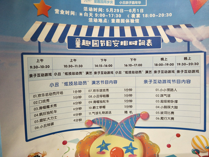 这次还有极具特色的两大主题:小丑“炫技总动员”和“亲子互动游戏”。下面是节目单。