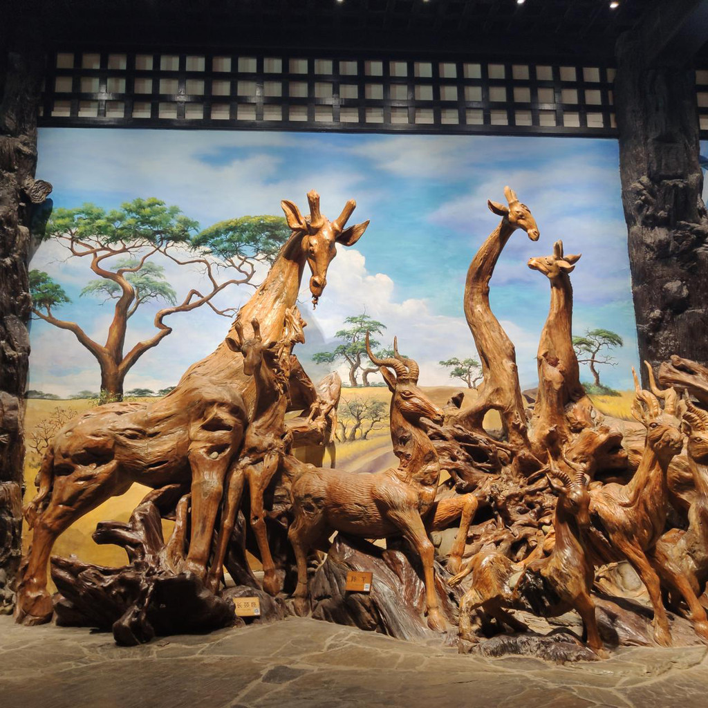 往前走,真是让我大为震惊,这一个个根雕的背后,该是多少个日夜的付出和努力呀,不得不心生佩服,感慨艺术的伟大!不同动物的,不同的品种,不同的神态,真是绝了。