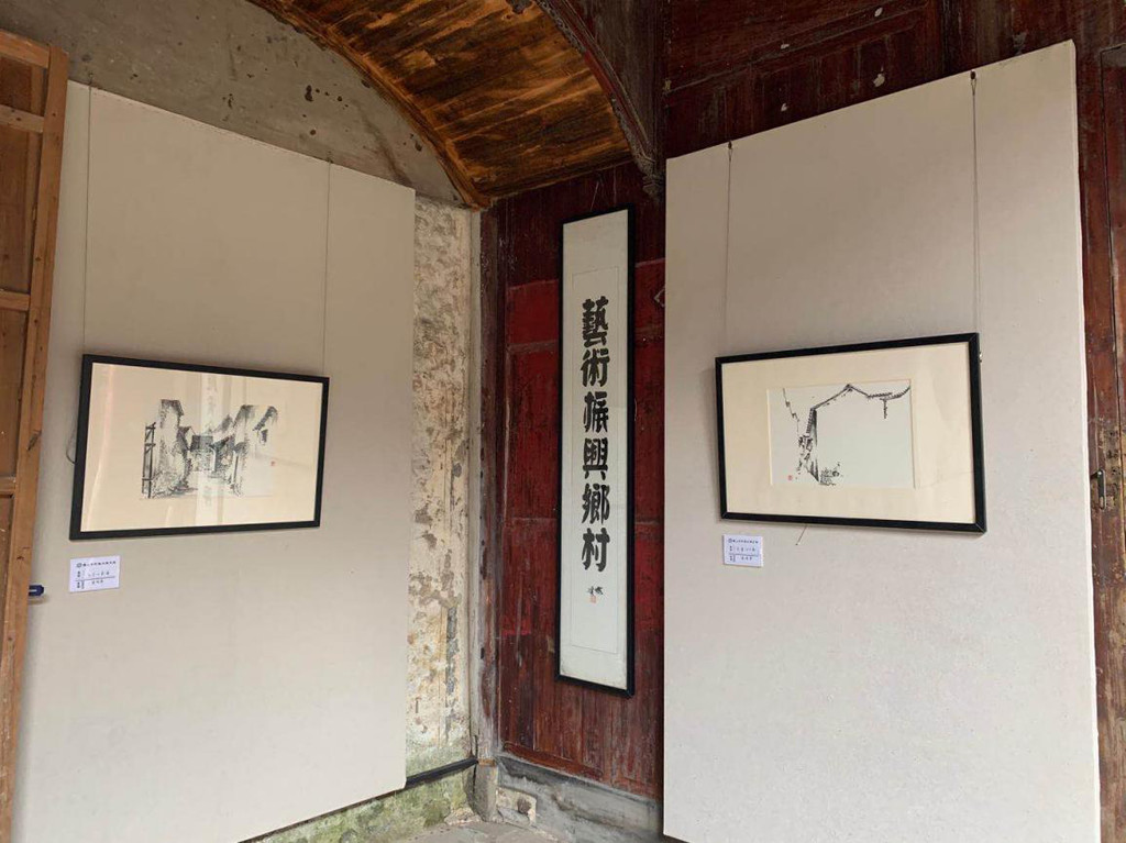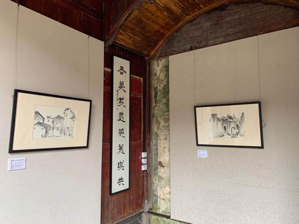 墙上展览着一幅幅写生画,山水画、风景画......大小不一,各有各的韵味。