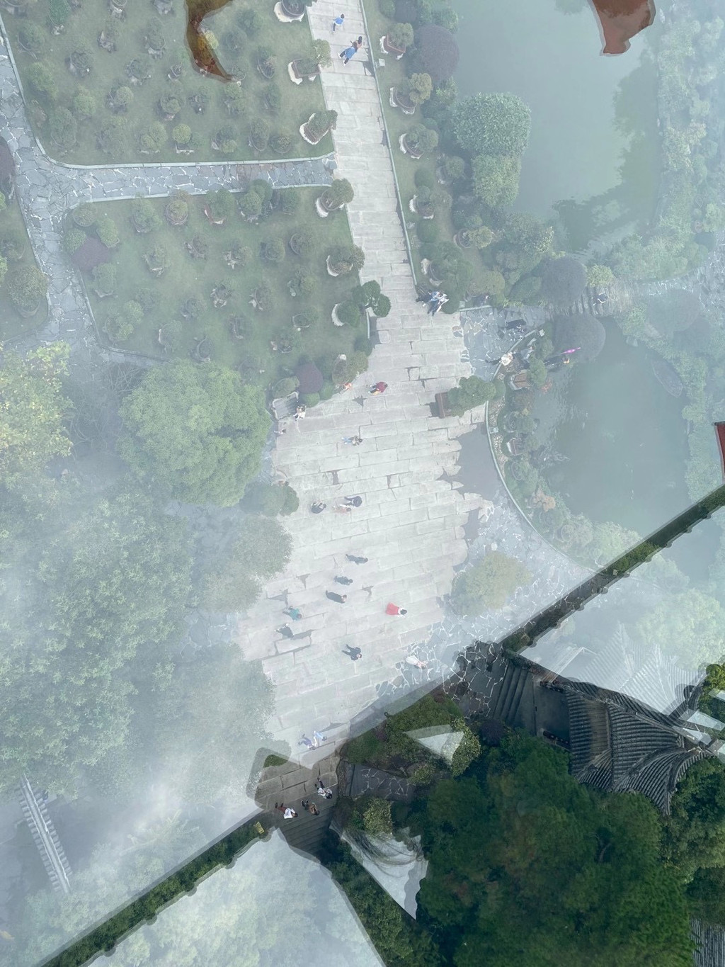 抬头望见了玻璃栈桥,想上去一览开化风景,又有些许害怕......