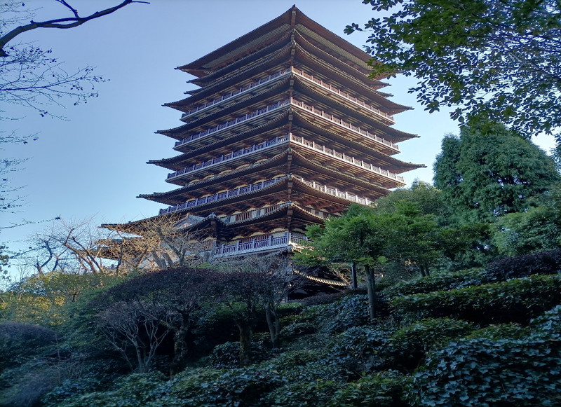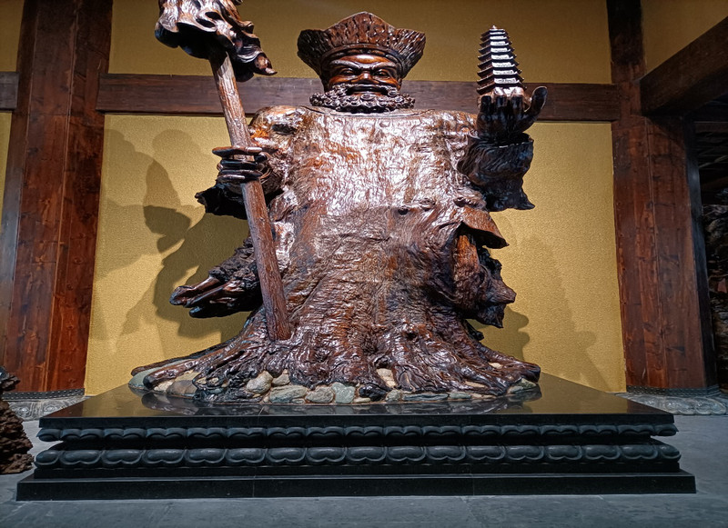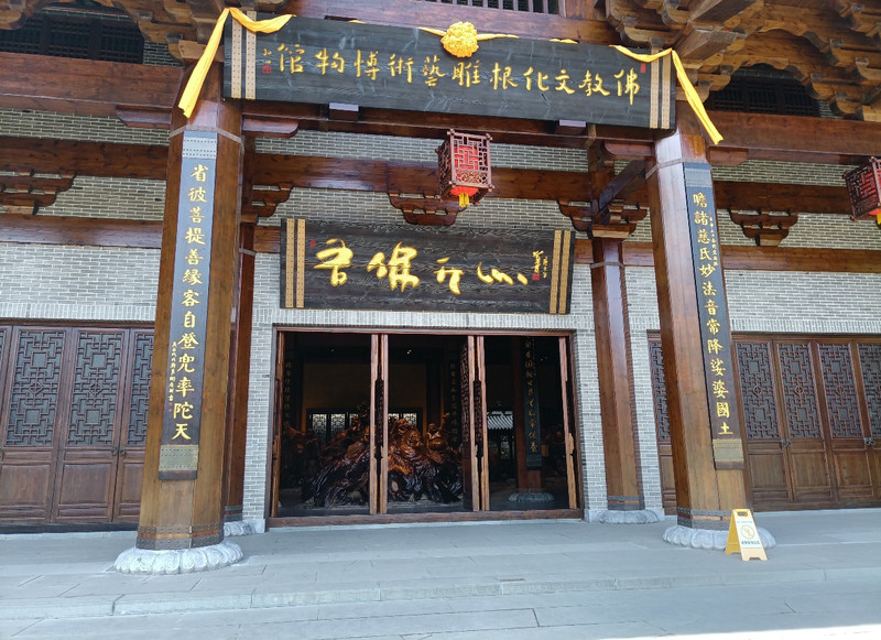 早在还没进入景区之前,远远的就望见了这座根宫佛塔。来到了这座佛塔跟前,还是只能远远的观望。不知为何,这座佛塔好像一直不对外开放,我的一览众山小的愿望也随之化为泡影。既然不能亲眼所间,我只好打开了百度百科来满足自己的好奇心。根宫佛塔因其塔内主要陈列观音的造像又称观音塔,塔的第一、二层供奉着卧姿观音、如意观音等136尊根雕观音造像,第三、四层陈列着由阴沉木雕刻而成的八百罗汉,第五到十二层陈列着古今中外的观音画像和世界各国的观音主题艺术作品,塔的顶层供奉着四面观音,正中安放了一个巨大的铜钟-八面禅钟。