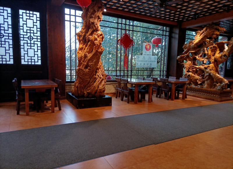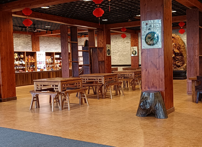 游玩登山赏根的之旅,当然要以美食来画上圆满的句号啦。下山的途中,记得一定要去山底的餐厅打卡,简直人间美味。餐厅里提供像汽糕、米果、粉干等开化特色风味小吃,花上50元就可以点一堆吃的,相信我绝对可以满足你的味蕾。在此提一句,开化可是上过《舌尖上的中国》。餐厅内的布局整体色调以红棕色为主,餐桌四周陈列着几件根雕大作供食客欣赏,在如此环境下,我的食味自然也大涨。