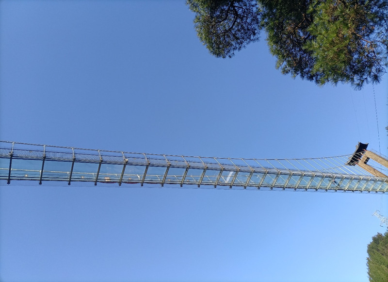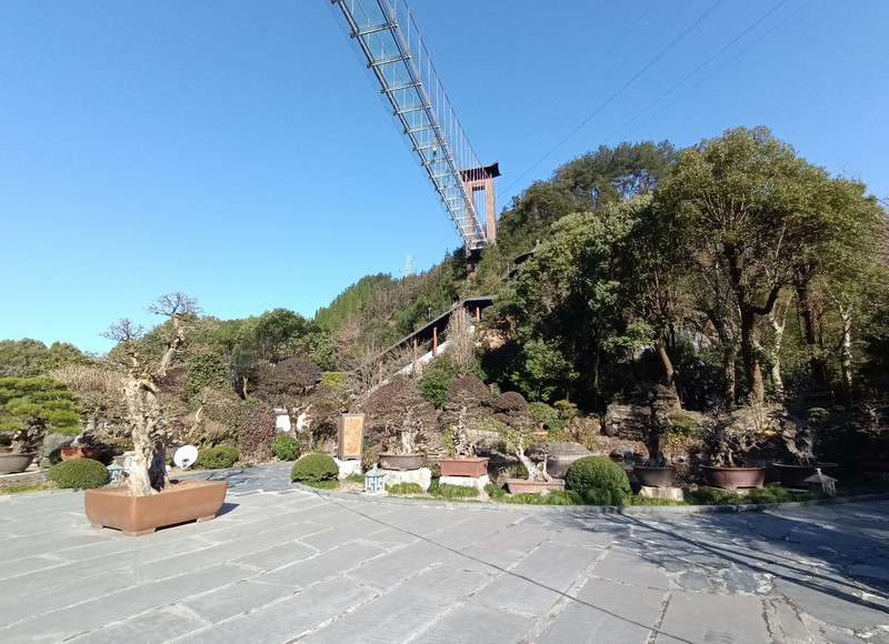 高高的悬挂在空中的玻璃桥,便是菩提桥。恐高的我战胜不了内心的恐惧,只能在底下卑微的驻足观望。想要一试的朋友们,山上有自动电梯可以直达菩提桥。“肯定很吓人,诶呀没事的,又不会摔下来,景色肯定美级了”在内心的苦苦挣扎下,还是本能的拿起手机拍了个照。