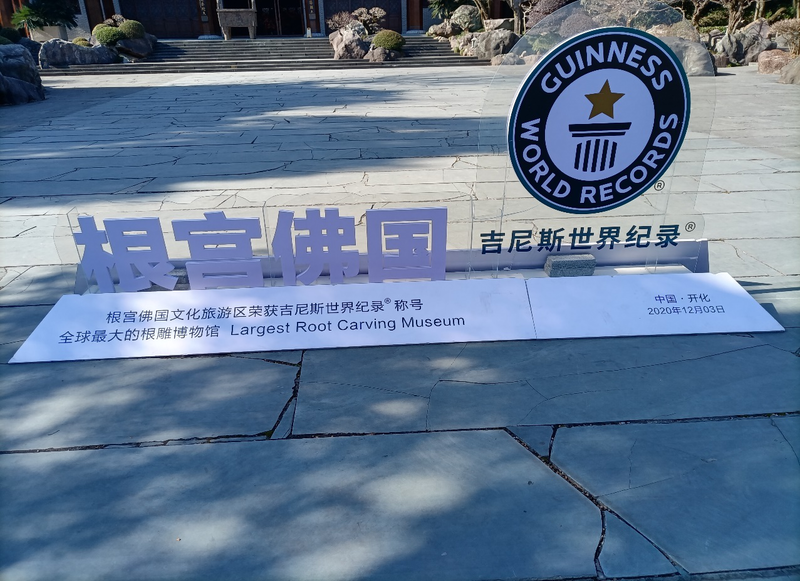 2020年12月03日,位于中国浙江省衢州市开化县的根宫佛国文化旅游区荣获“全球最大的根雕博物馆”吉尼斯世界纪录称号。整个旅游区分为根佛文化景区和华夏根文化景区两部分,由工艺美术大师徐谷青一手创建,以根雕艺术作品为载体向世人展现着传统的佛教文化。