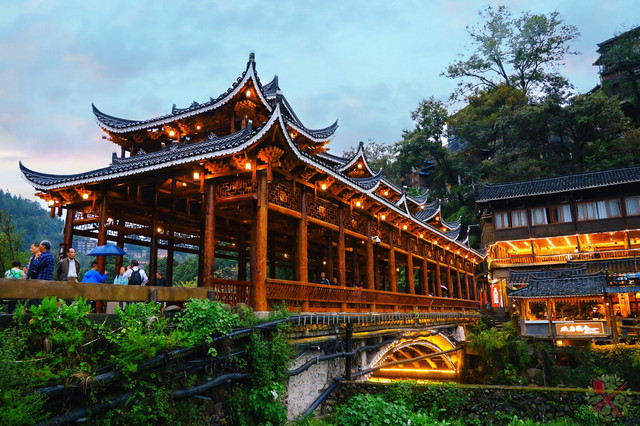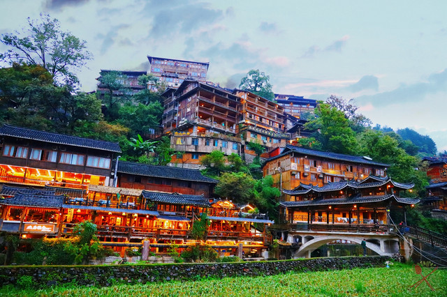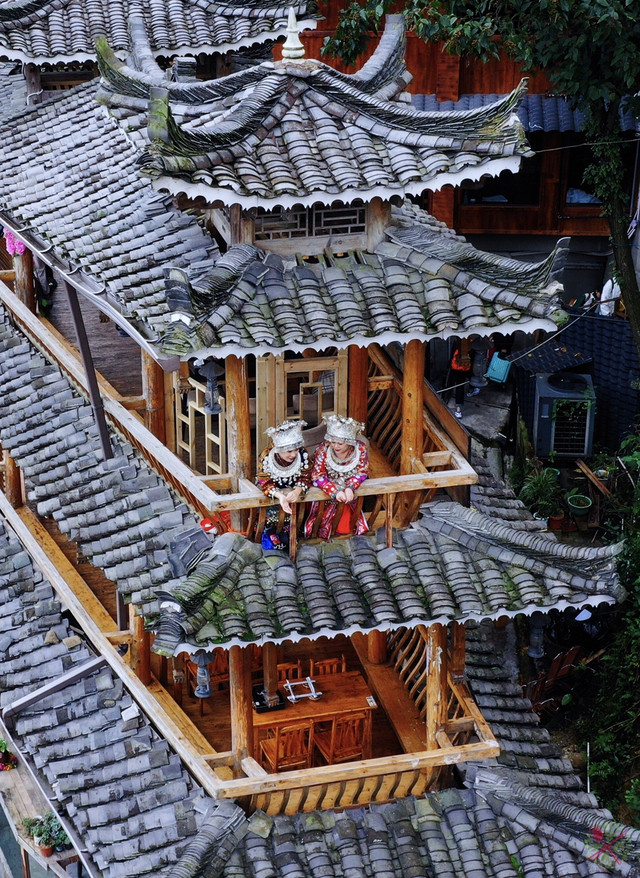 这座吊脚楼很漂亮,第三层是绝佳拍照点,穿上苗族服饰拍照超美的,时间充裕的话,最好晚上六七点来拍夜景,这时的亭台楼阁灯光璀璨,宛如人间仙境。
