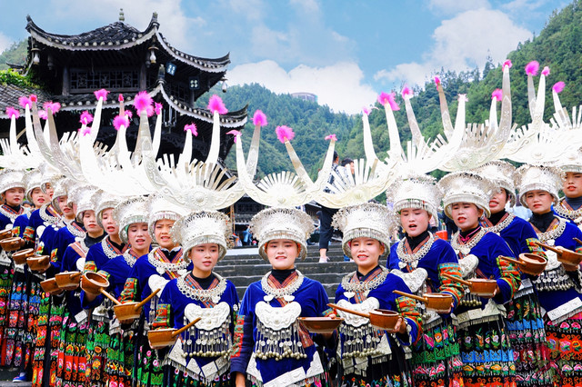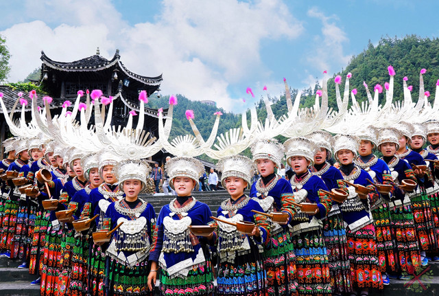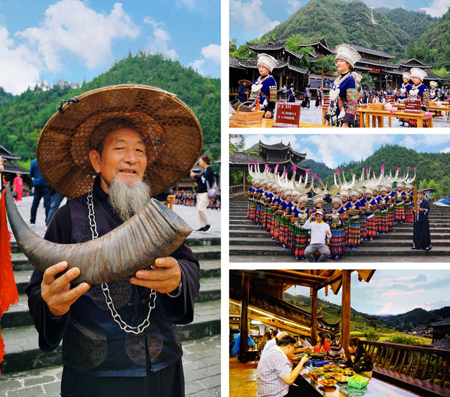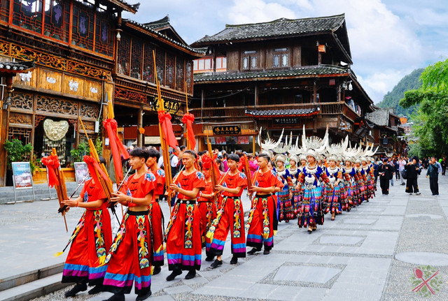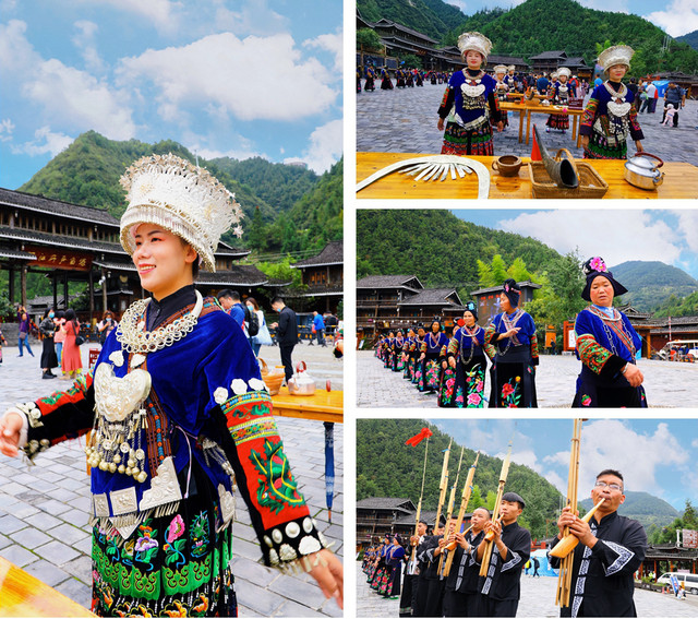 千户苗寨保留了最完整的苗族原生态文化,比如苗族农耕、节日、银饰、歌舞等民俗文化,还有十二道拦门酒、高山流水以及长桌宴等苗族美食。