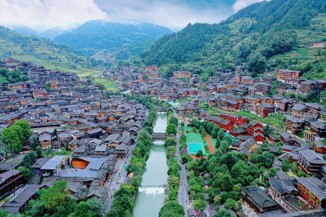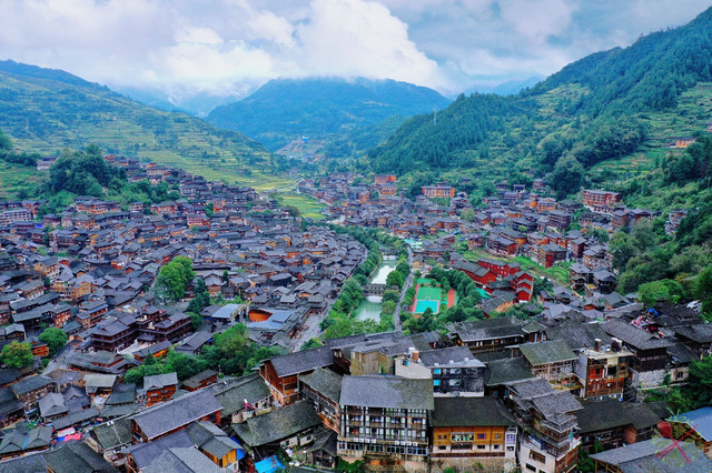 想看西江千户苗寨的全景,山顶观景台是最佳赏景点,放眼望去被白水河分为二的苗寨,层层叠叠的吊脚楼从山顶蔓延到远处的山头,非常气势恢宏。