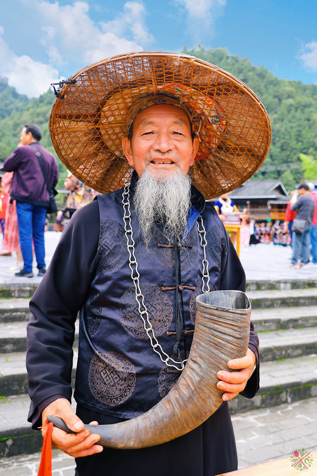 十二道拦门酒依次排开,喝的是牛角酒,每当苗寨有贵宾或民俗活动必喝牛角酒。喝牛角酒只能用嘴接,不能用手接,喝一口即可以过关,酒量浅的话,喝三四道拦门酒就行了,酒量好的话,可以连闯十二道拦门酒。