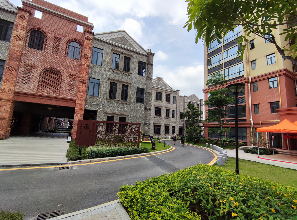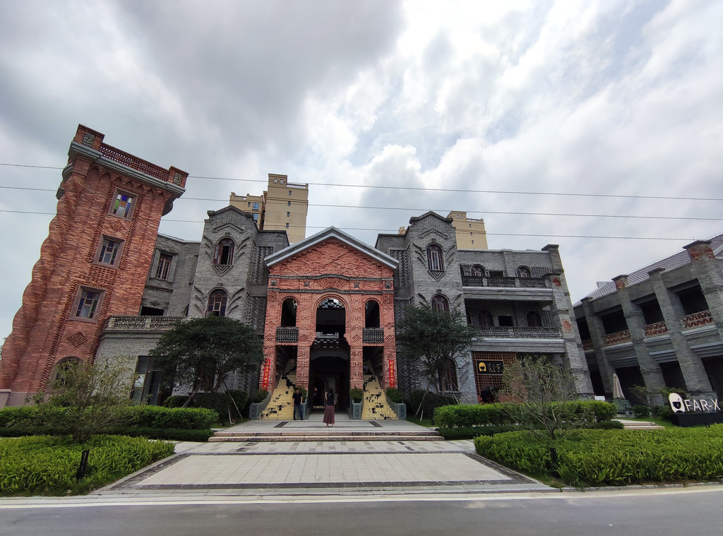 赤坎侨小馆位于赤坎镇新区A1~1号,是一个建筑景观一体化的庭院式骑楼组群商业综合体。赤坎侨小馆以“三清三拆三整治”过程中产生的青砖、红砖为建筑材料,融合岭南传统建筑元素,采用花式砌法与传统建筑建造工艺进行创作,致力于将侨小馆打造成为集商业、旅游观赏价值于一体的理想社区。
