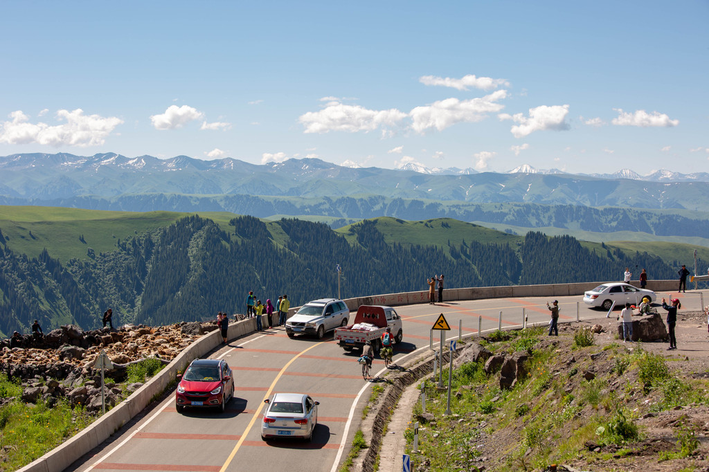 下一目的地,禾木,车流密集,有序行驶,没有超速超车的。