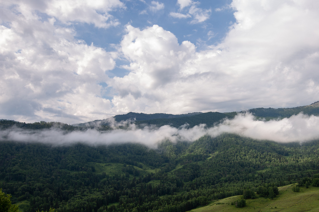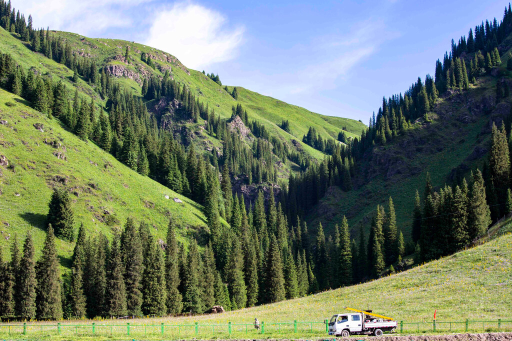 那一栋栋的小木屋和成群结队的牧群,与森林、草地、蓝天白云构成了独特的自然与文化景观