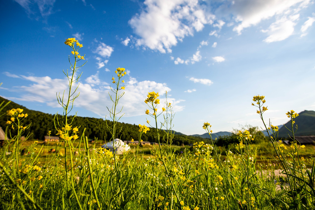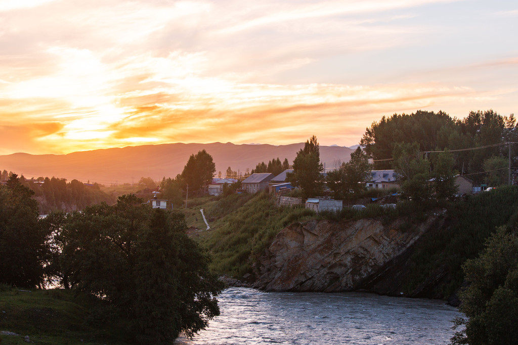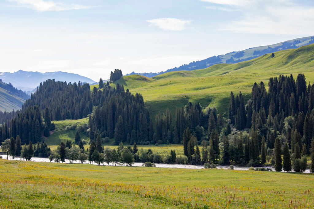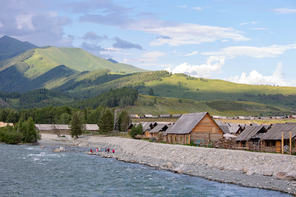 自然、原始的山野风光,风景独美,禾木河自东北向西南流淌,原始落村与大草原和谐自然的融为一体。