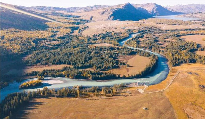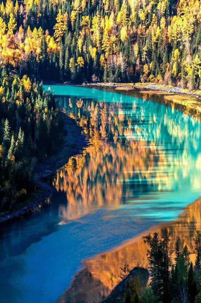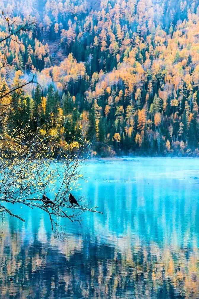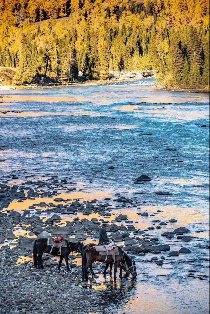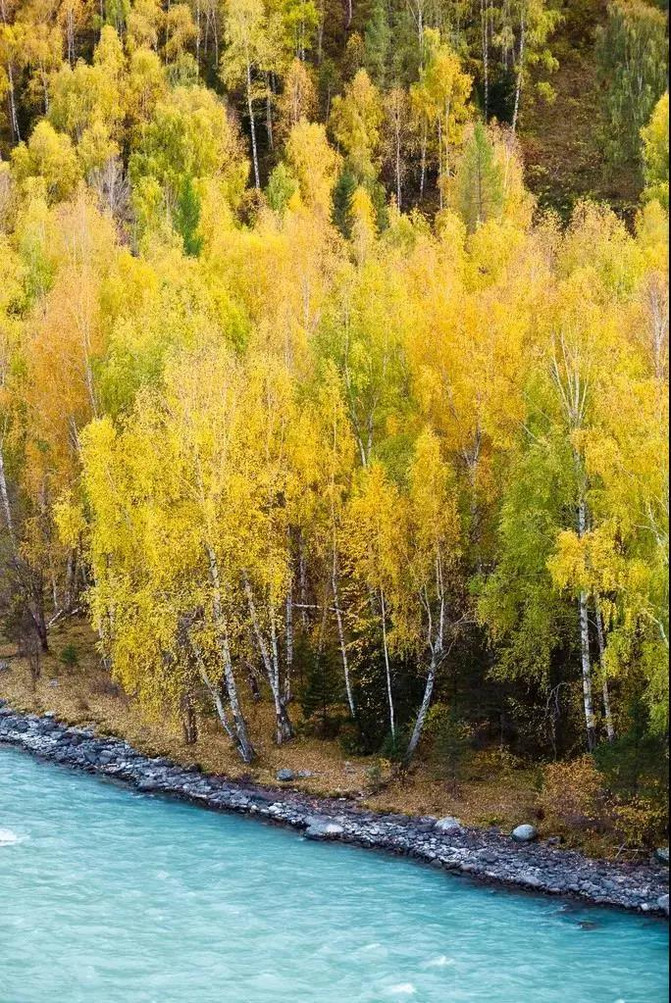 喀纳斯的秋天尤其夺目,当秋风呼啸着吹过喀纳斯草地,打着滚绕过白桦林,这片草木繁盛的大地犹如被洒了一把魔法金粉,喀纳斯河变得温柔,阿尔泰山也俨然一处仙境森林。