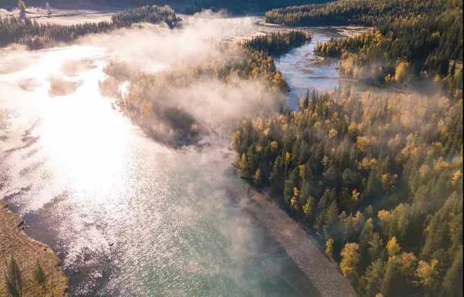 壮阔磅礴的泰加林,奔腾不息的河水,神秘的古老传说,弥漫在山林间的水汽云雾,让喀纳斯充满了电影的质感和神秘感。