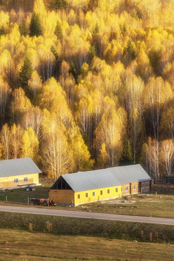 炊烟、木屋、小路和金黄的白桦,勾勒出秋天最美的模样。