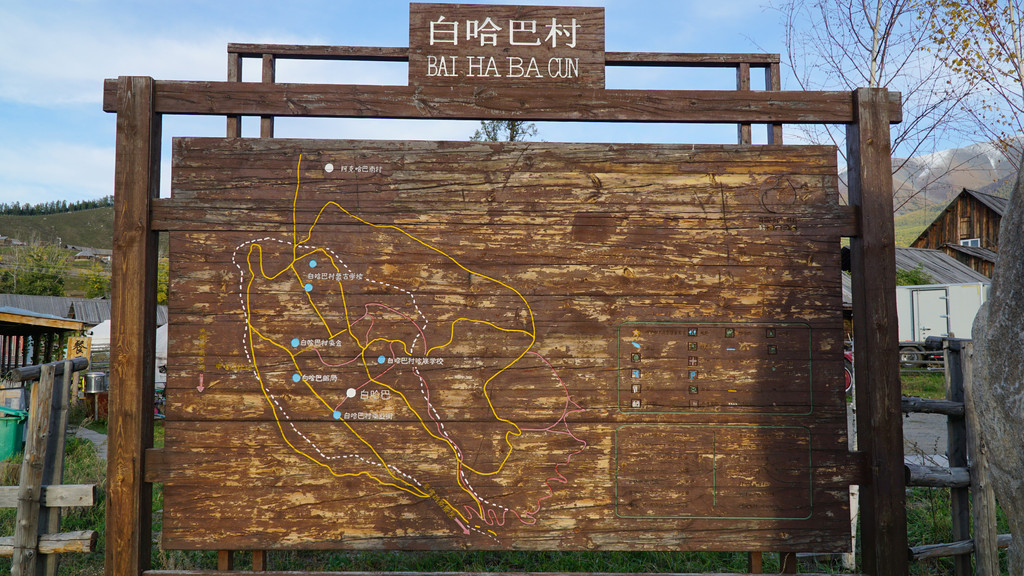 禾木山庄停车场搭乘免费禾木公交车至卫生所站下车,前行至第一个路口右转顺路抵达禾木桥和登顶栈道