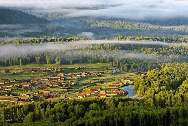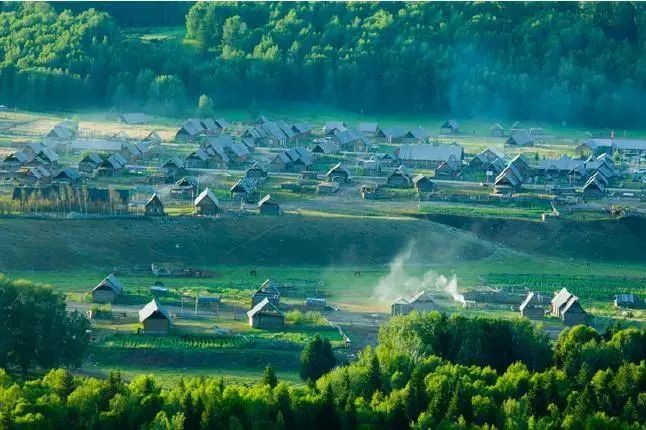 清晨,喀纳斯村的房屋在晨雾中若隐若现,村民住的木屋和圈养牲畜的栅栏、草垛错落有致地散布在树林之间,一缕缕凫凫炊烟从一幢幢房顶上徐徐升起,体验这里的原始部落生活。