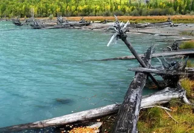 六道湾“奇”,是湖水入水口,壮丽的雪山下“枯木长堤”的奇观就神秘地呈现在这里,是喀纳斯神奇壮美的大风景所在地。