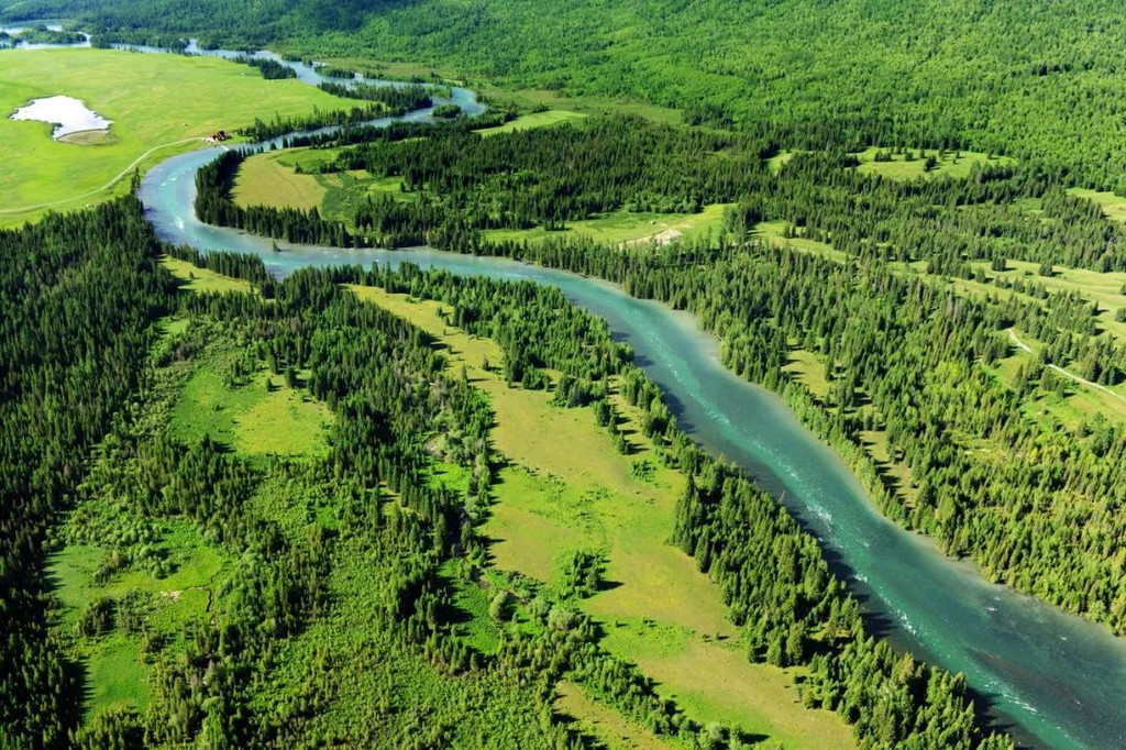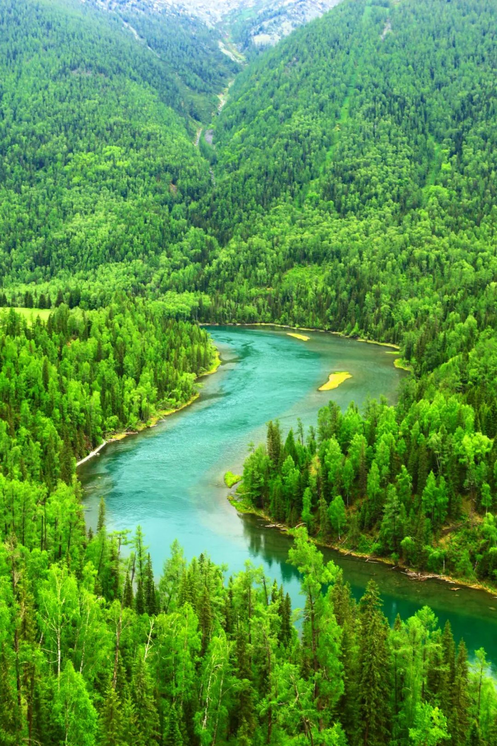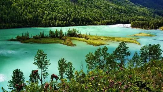 喀纳斯河原始秀丽,如同玉带飘舞在深山密林之中,喀纳斯河在山谷中蜿蜒流淌,形成了卧龙湾、月亮湾、神仙湾等秀丽绝伦的水湾河滩。