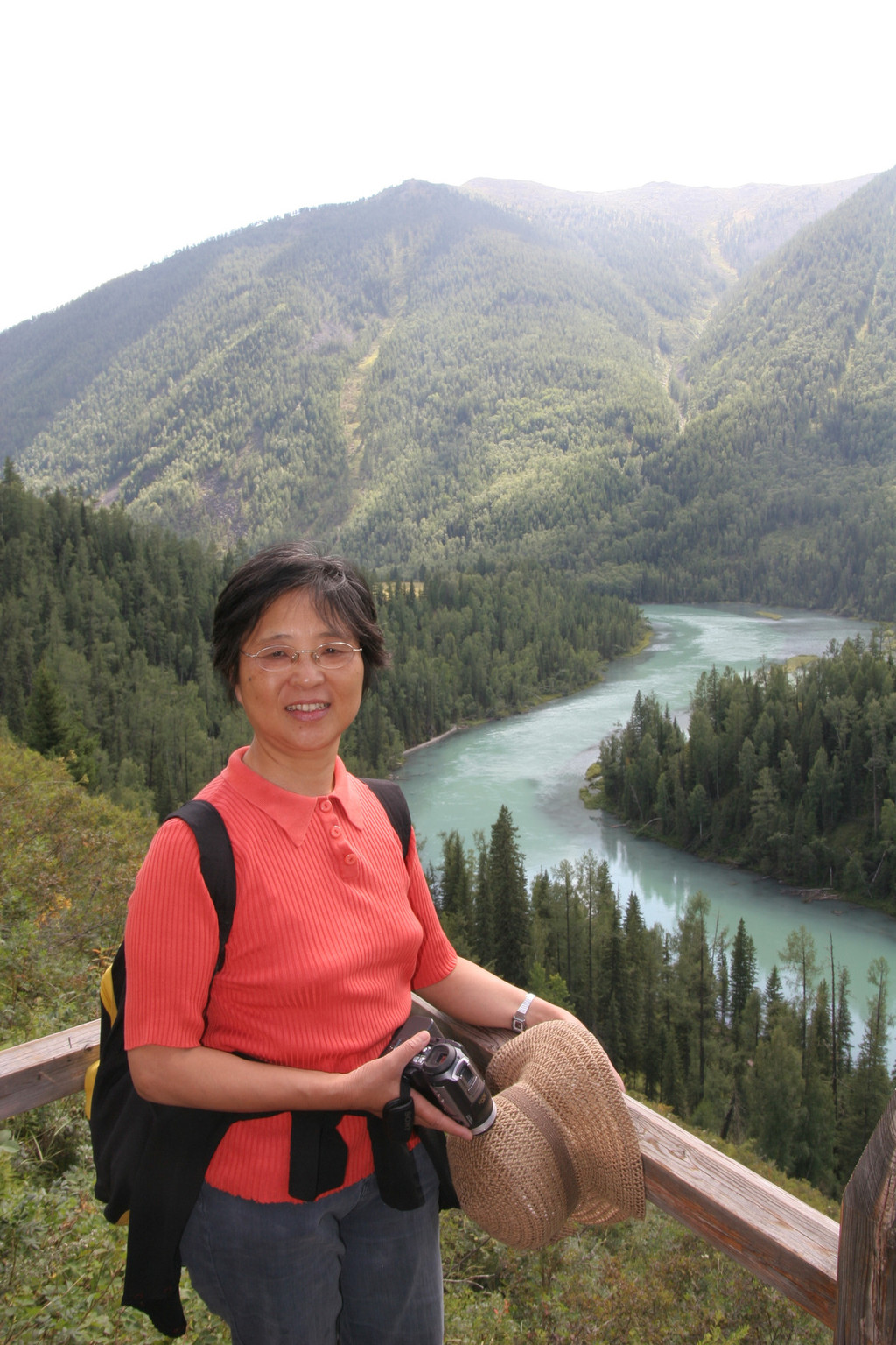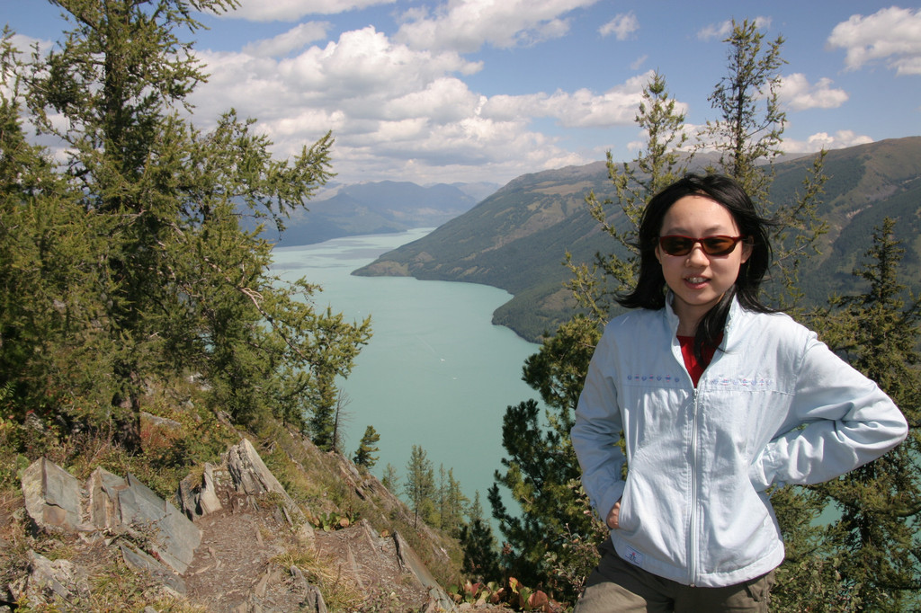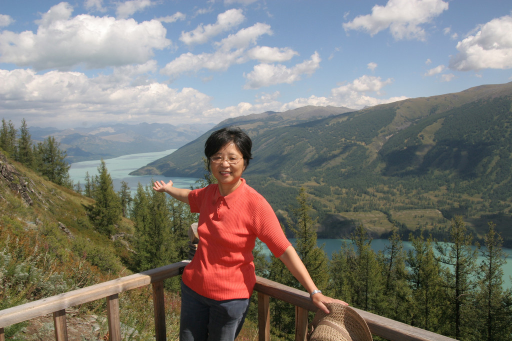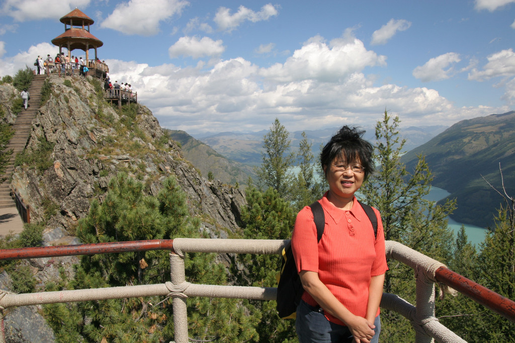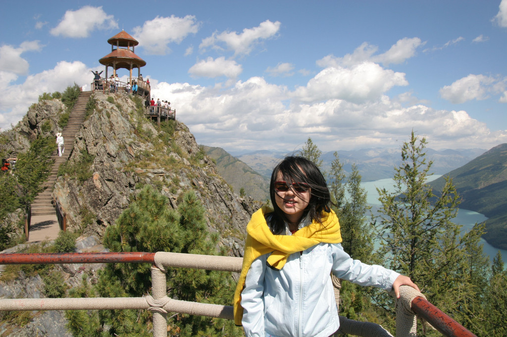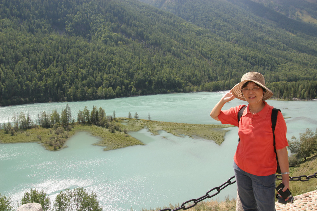 由于时间关系,在“观鱼亭”我们呆了十几分钟,从各个角度拍了一些照片,爬了半个多小时的山,就是为了一睹喀纳斯湖的风采。