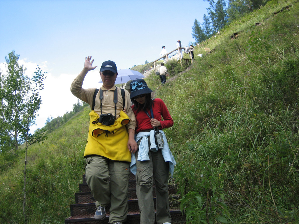 这时已6点过了,在停车场找到了我们的车,但是没有一个团员,看来我们早到了。找个阴凉处休息,不一会儿团员们陆陆续续来了。但是没有看到去白哈吧村的团员们,找不到导游问司机,回答:不可能这么早回来的,让我们耐心地等。我们感到像吞了苍蝇一样,郁闷!明知道6点前赶不回来,为什么叫我们6点集合?部分团员与两位司机理论。我在想我们都赶得急了点,那些团员理因赶不到的,后悔没有要他们的手机号,不然及时与他们沟通,我们不至于那么急着赶路。结果白白浪费了2小时!超郁闷!