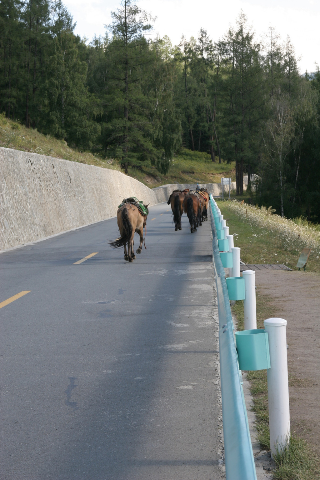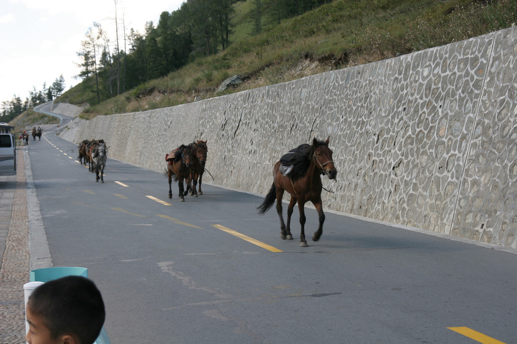 出村时,天还下着小雨,司机把车速放得很慢,使我们有了安全感。但没多久雨就停了,昨晚没有睡好的和今天早起的团员继续在车上打盹,养足精力,迎接下个景点——喀纳斯自然景区。