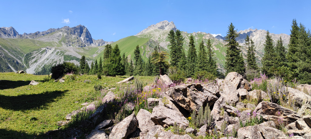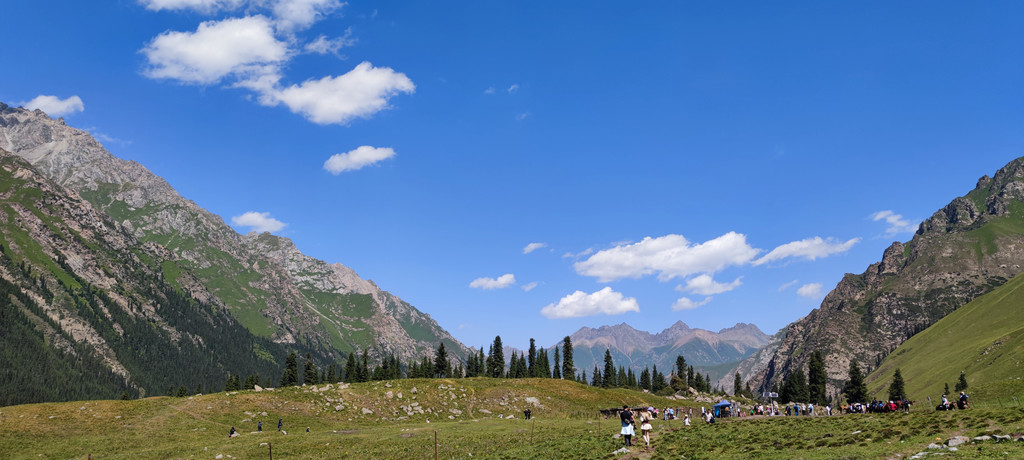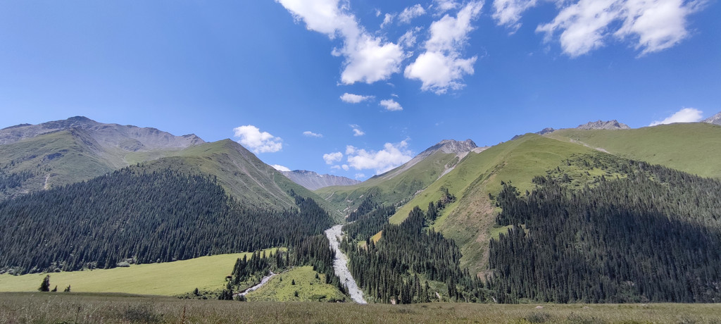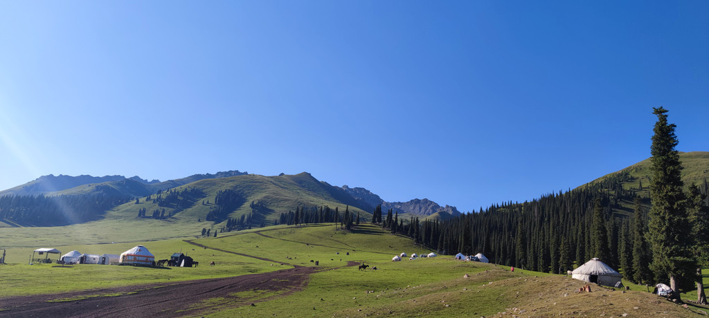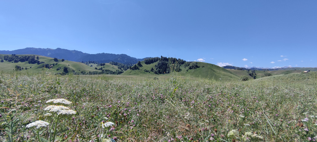 伊犁草原景区众多,每个县都有自己的景区,比如新源县的那拉提、巩留的库尔德宁和恰西、特克斯的喀拉峻和阿克塔斯、昭苏的夏塔、尼勒克的唐布拉。原计划从那拉提去库尔德宁和恰西及喀拉峻草原,后来考虑到时间和草原景色重复的原因取消了行程,直接从特克斯去夏塔古道国家森林公园。