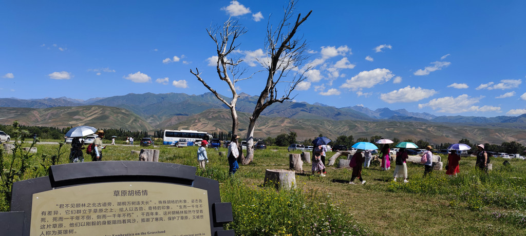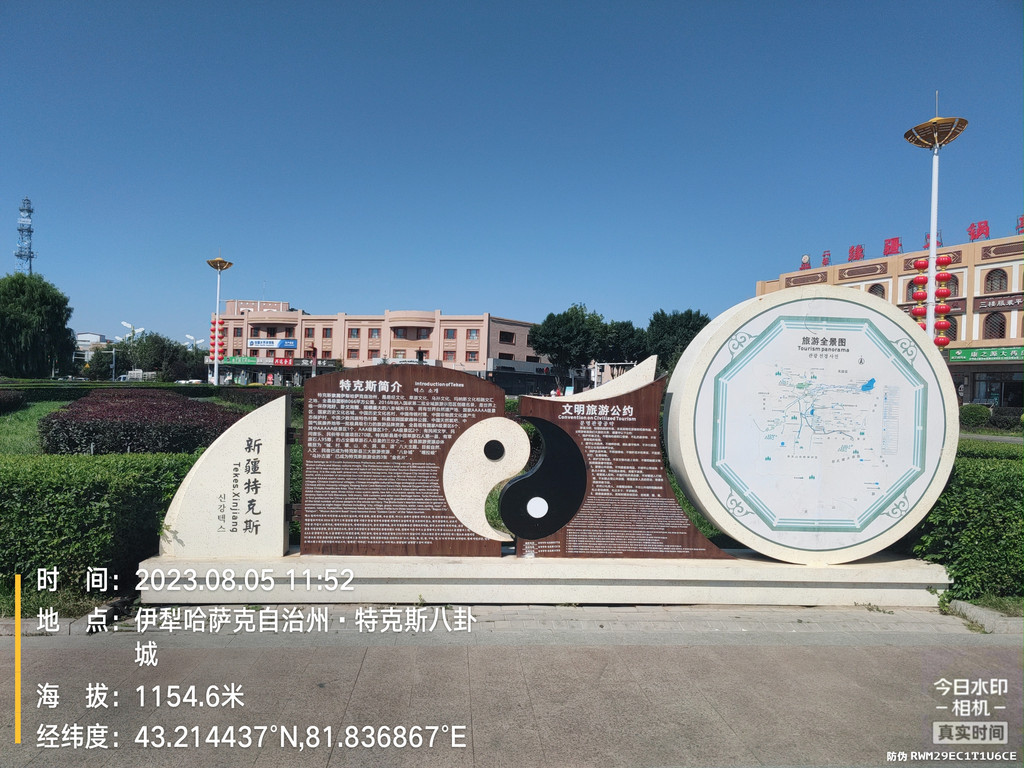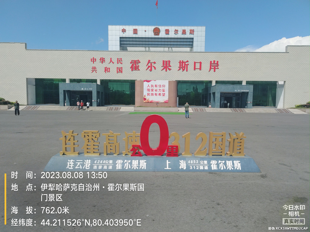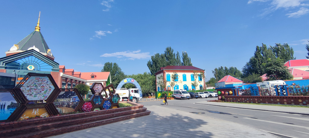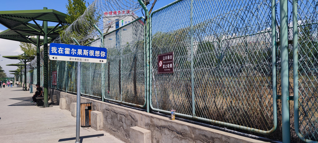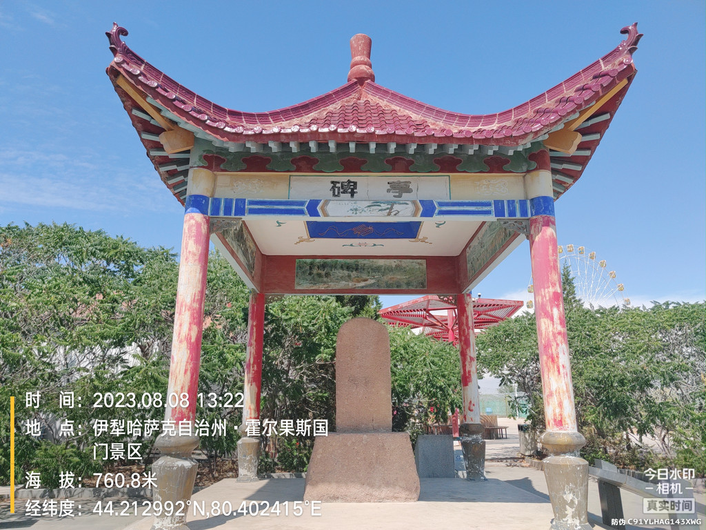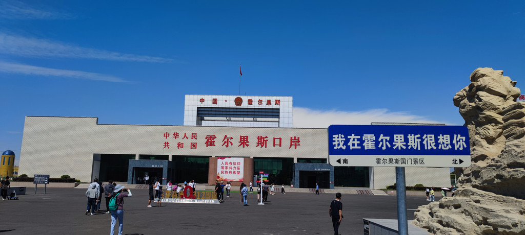 昨天下了一夜的小雨,上午10点还是阴云密布,从南门出景区后,天气逐渐晴朗,到达霍尔果斯景区时已经晴天碧日,又开始接受烈日暴晒。也是感受了新疆的“十里不同天”。
