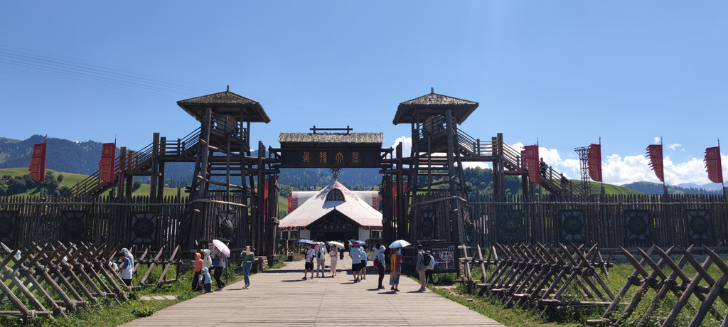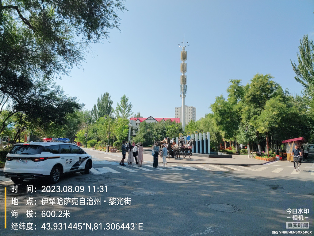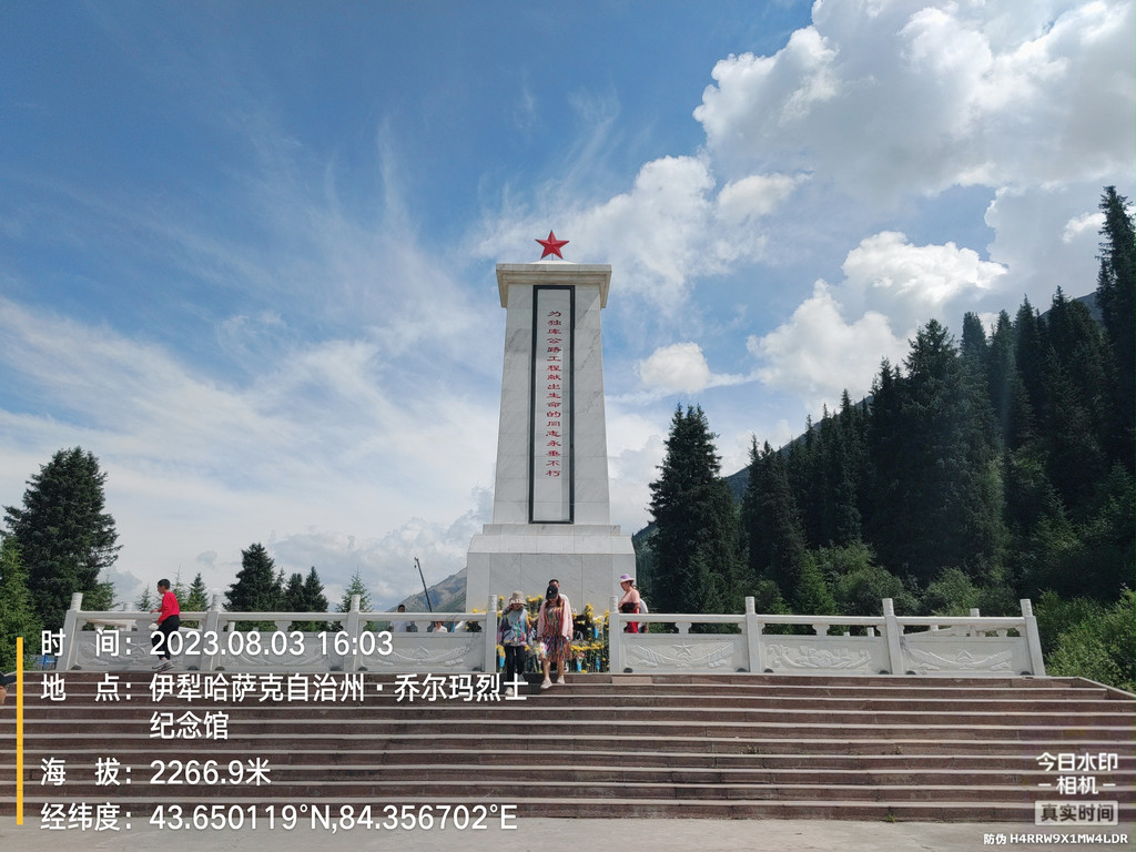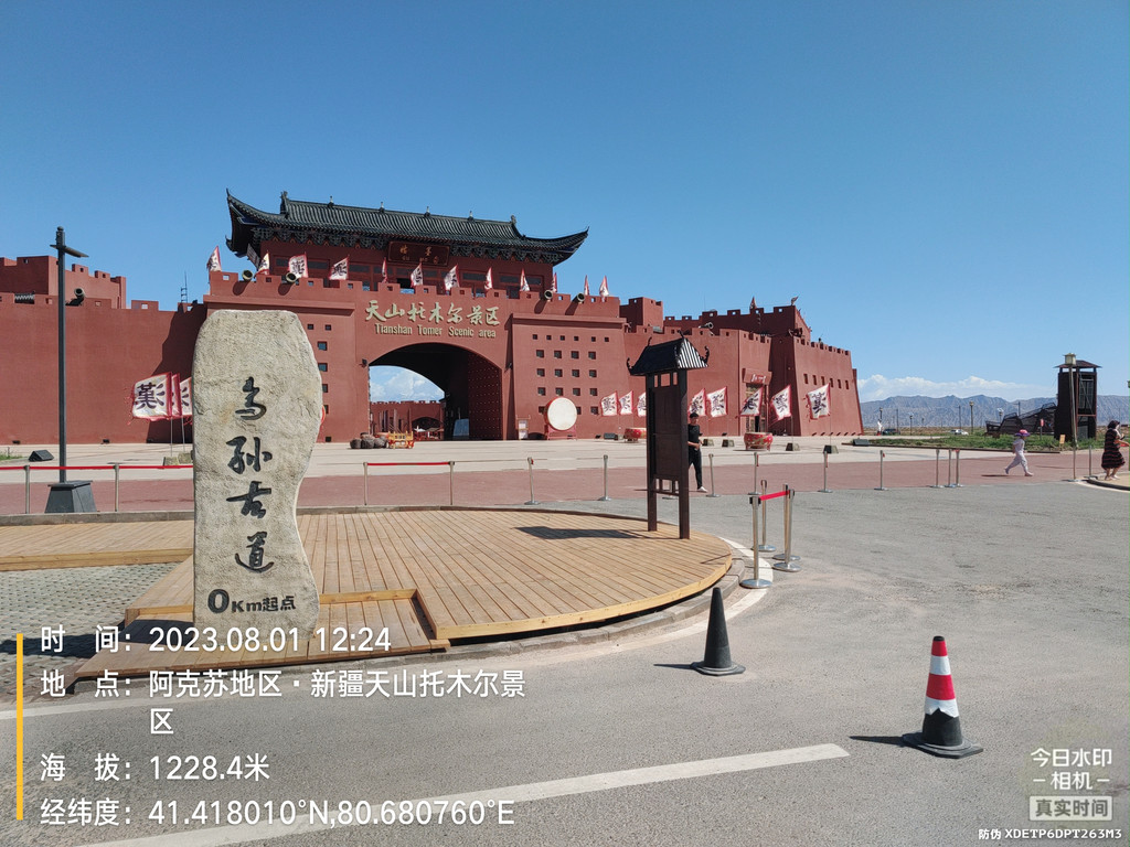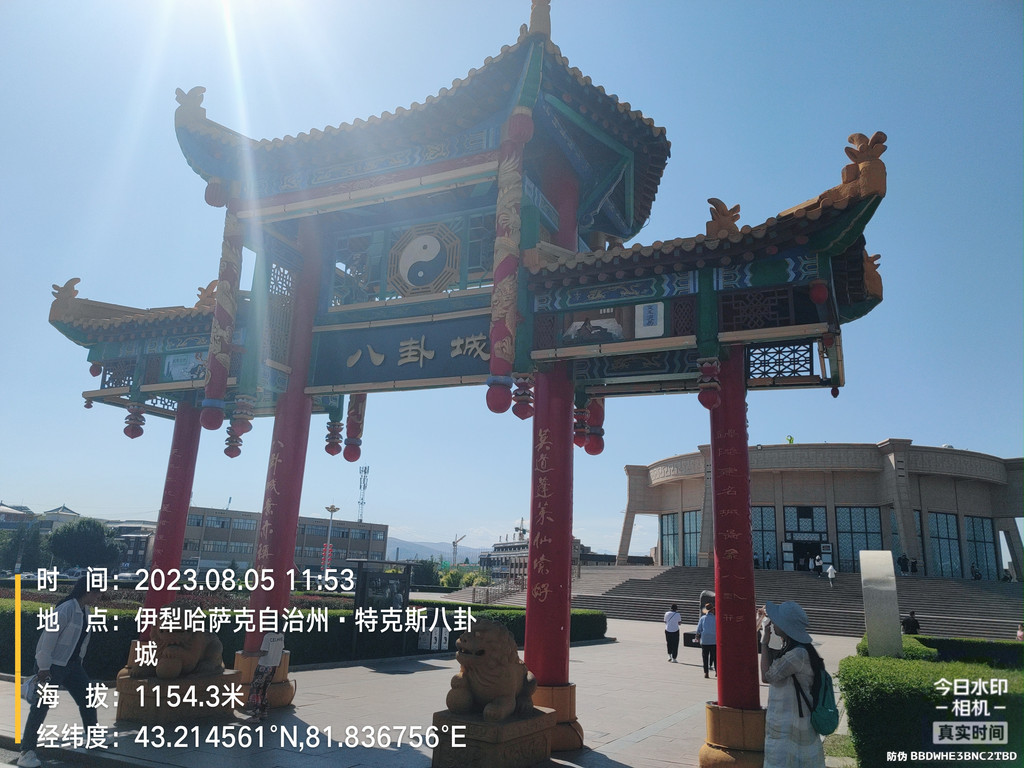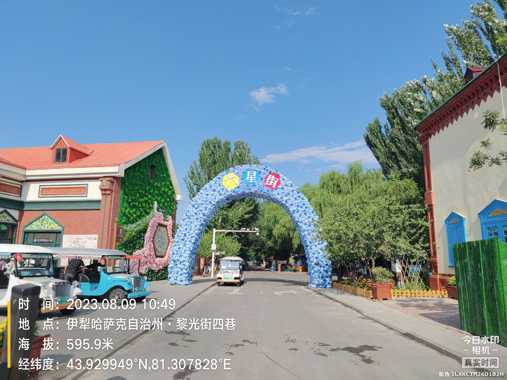 昨天下了一夜的小雨,上午10点还是阴云密布,从南门出景区后,天气逐渐晴朗,到达霍尔果斯景区时已经晴天碧日,又开始接受烈日暴晒。也是感受了新疆的“十里不同天”。