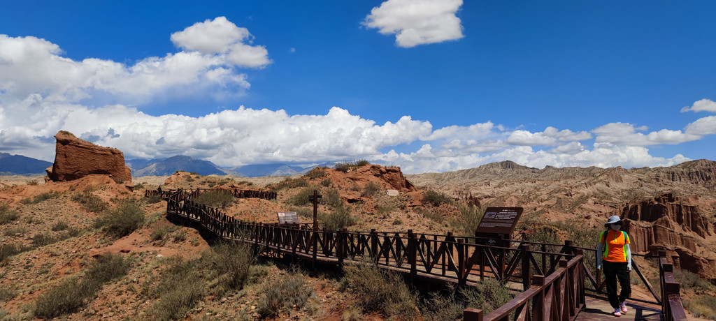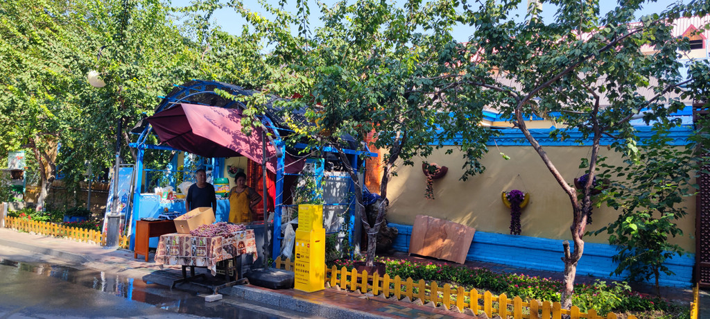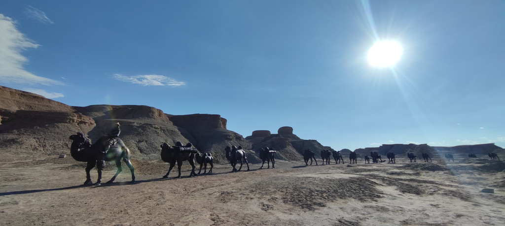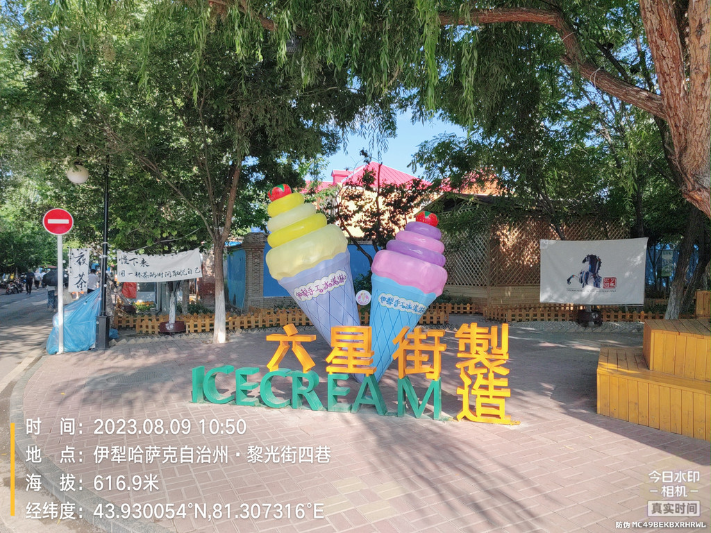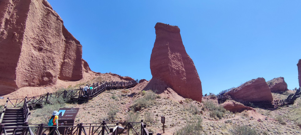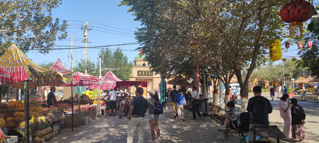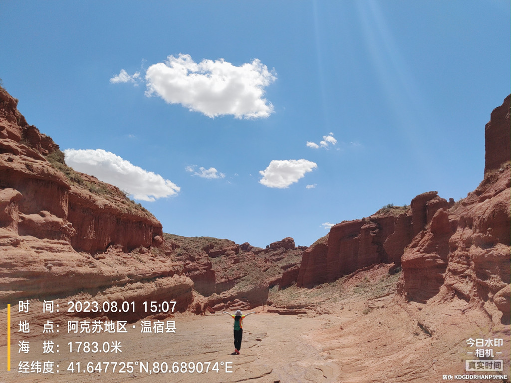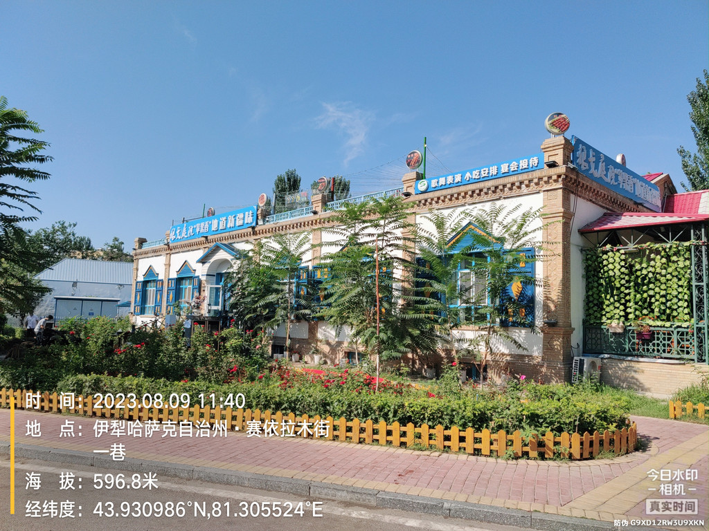 昨天下了一夜的小雨,上午10点还是阴云密布,从南门出景区后,天气逐渐晴朗,到达霍尔果斯景区时已经晴天碧日,又开始接受烈日暴晒。也是感受了新疆的“十里不同天”。