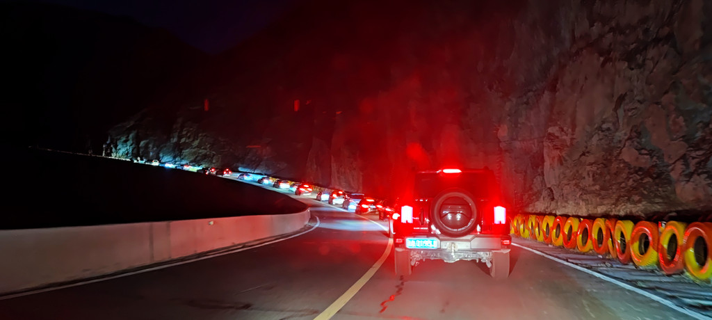 独库公路“堵哭”。晚上遇到牧民赶着羊群转场,堵了50多分钟,汽车长龙缓慢前行,非常壮观。