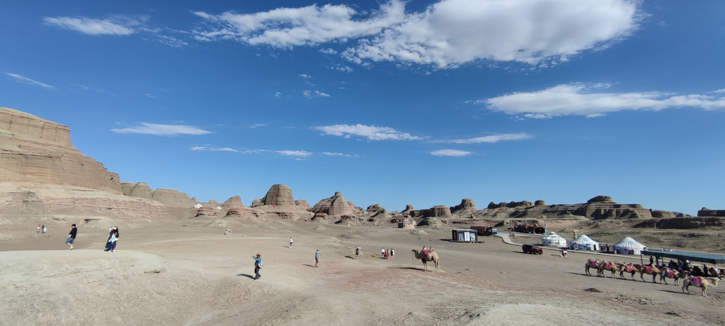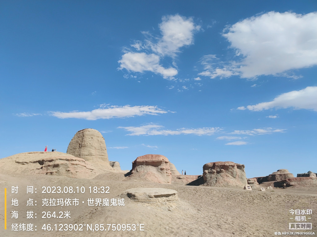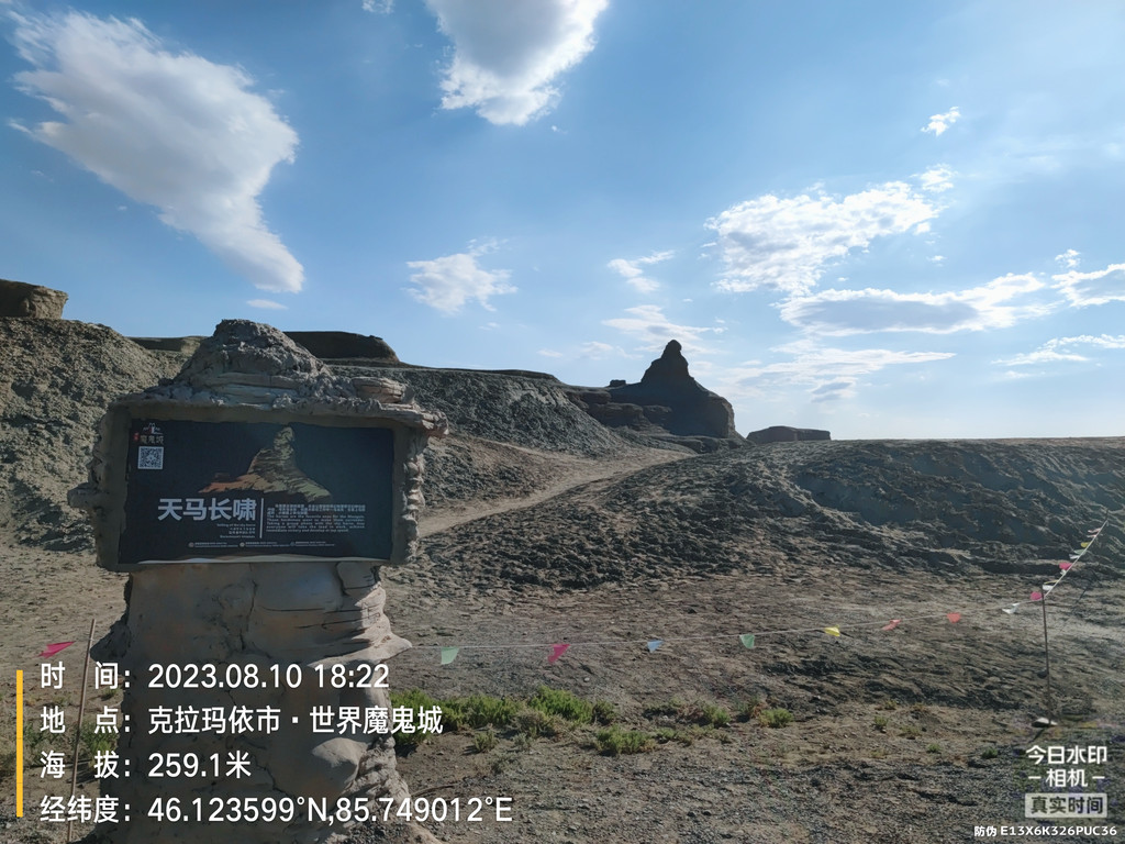 早晨从独库公路毛溜沟服务区出发,先后游览独山子大峡谷、独库大本营,走高速到乌尔禾魔鬼城,然后再从乌尔禾上高速,晚上23点左右到达布尔津县。