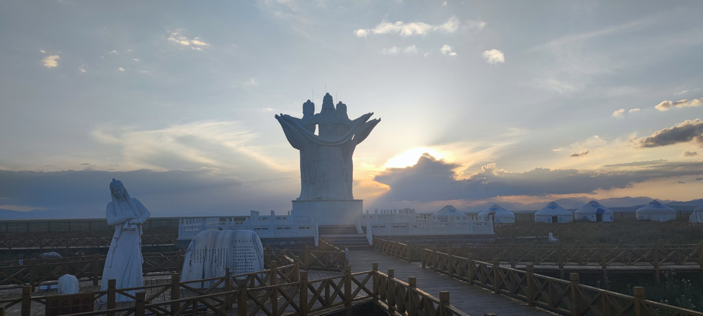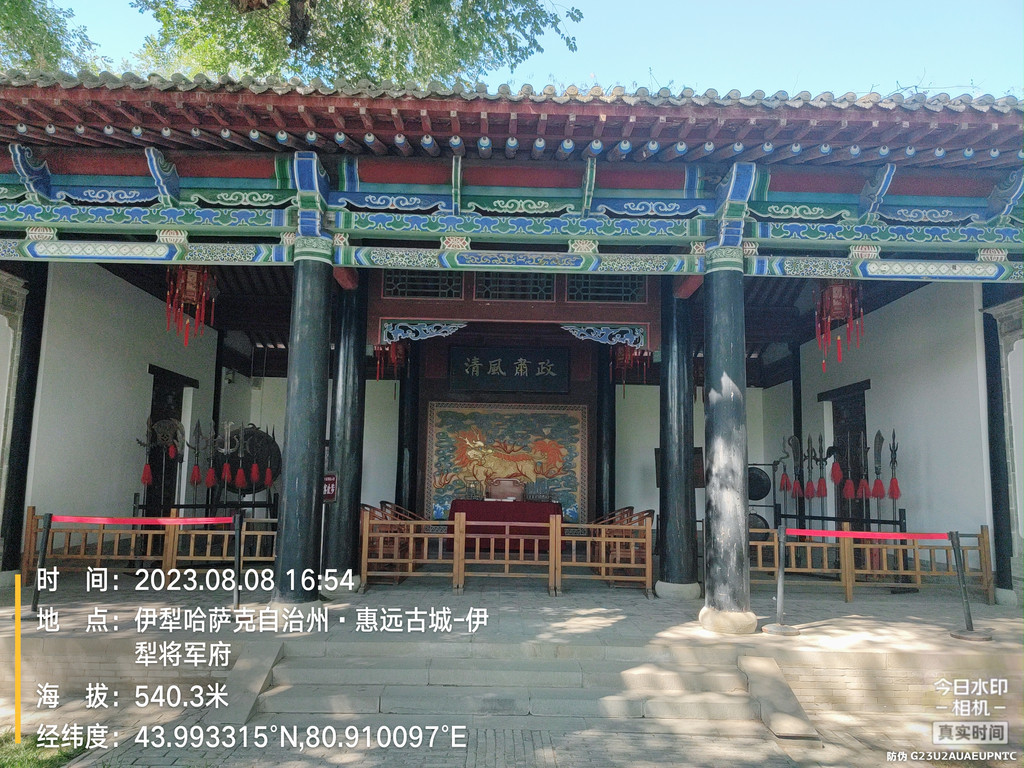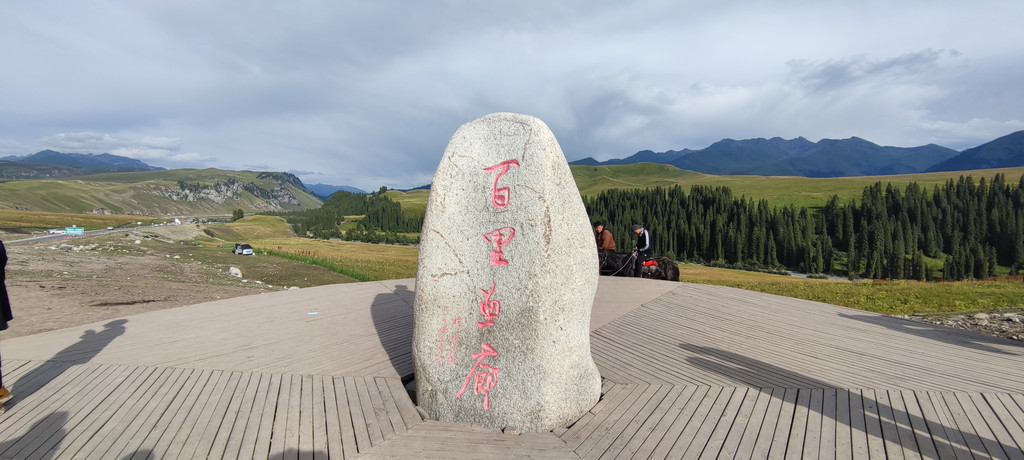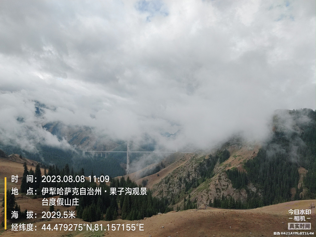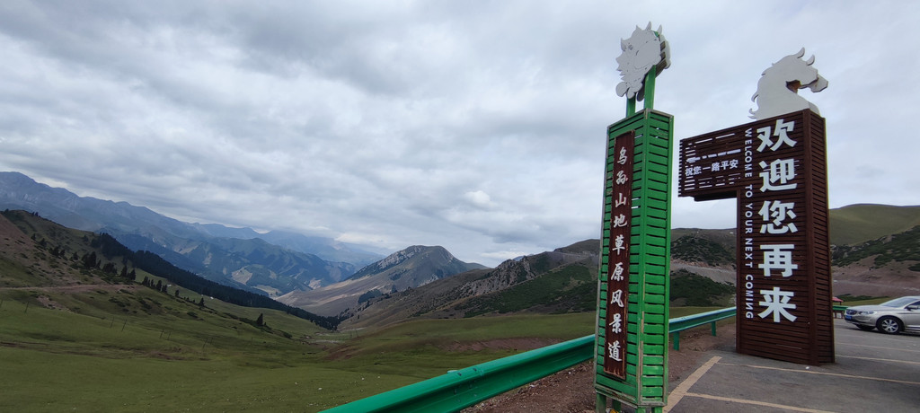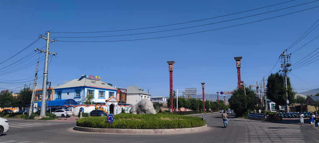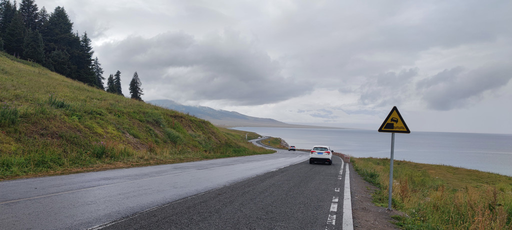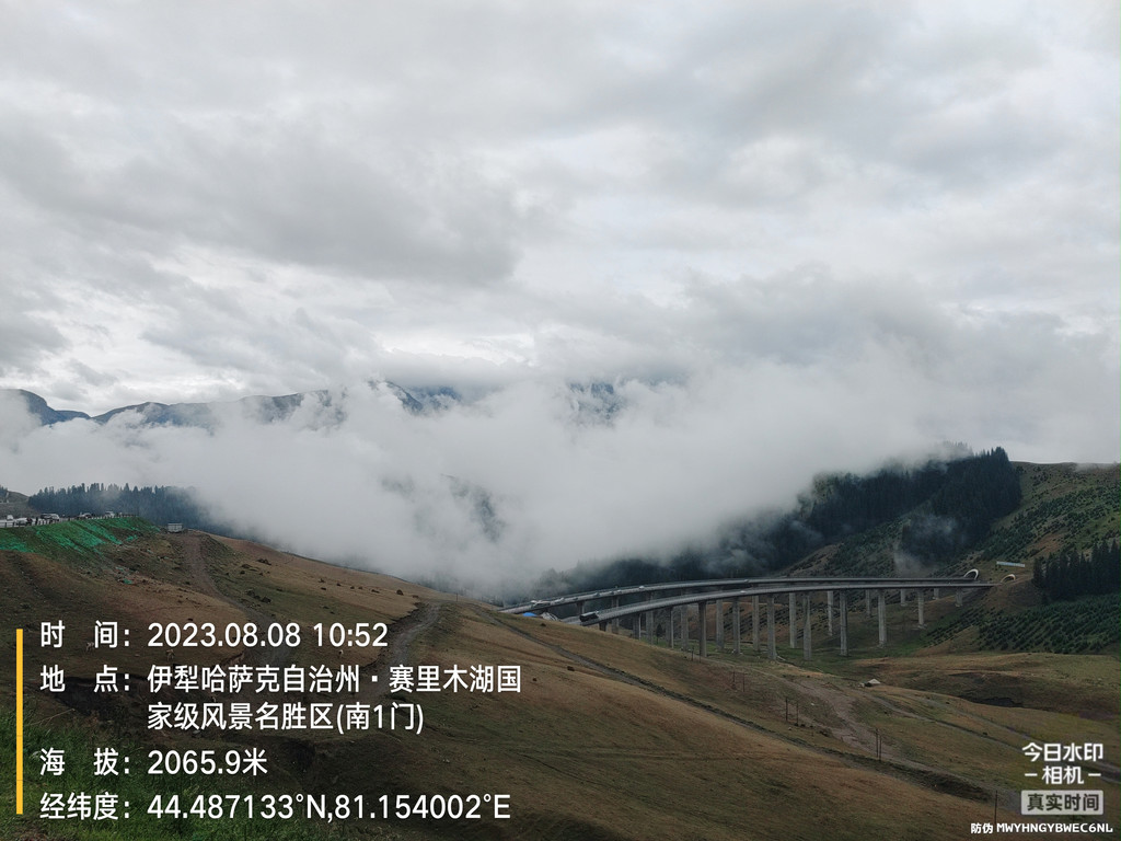 赛里木湖下了一夜的小雨,上午从点将台停车场出发,从南门出景区,走国道沿途观看果子沟大桥的风景。又走高速顺路游览了霍尔果斯国门景区和惠远古城的伊犁将军府。晚上20点左右到达伊宁市。