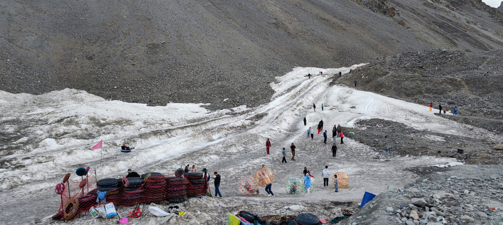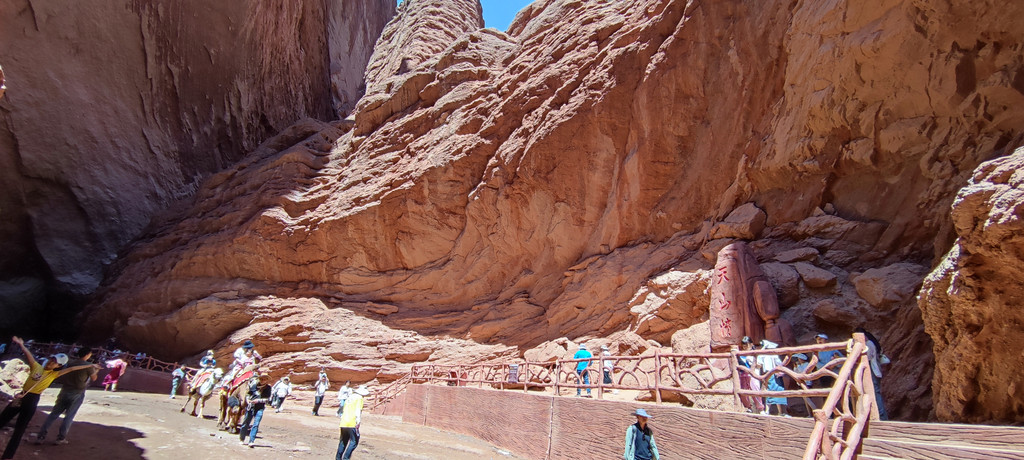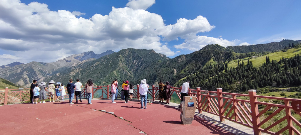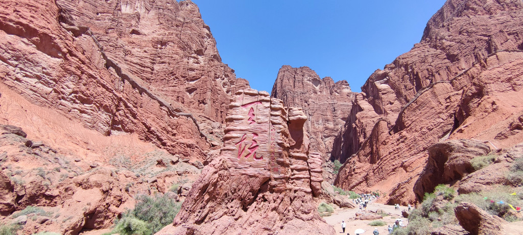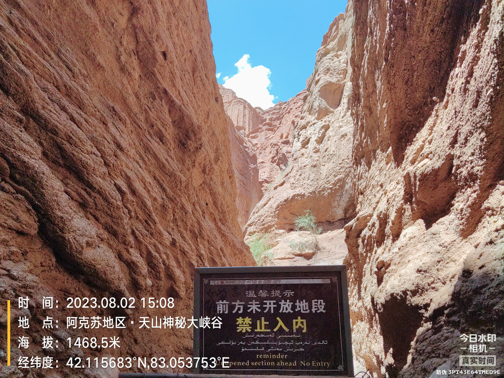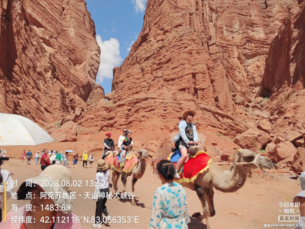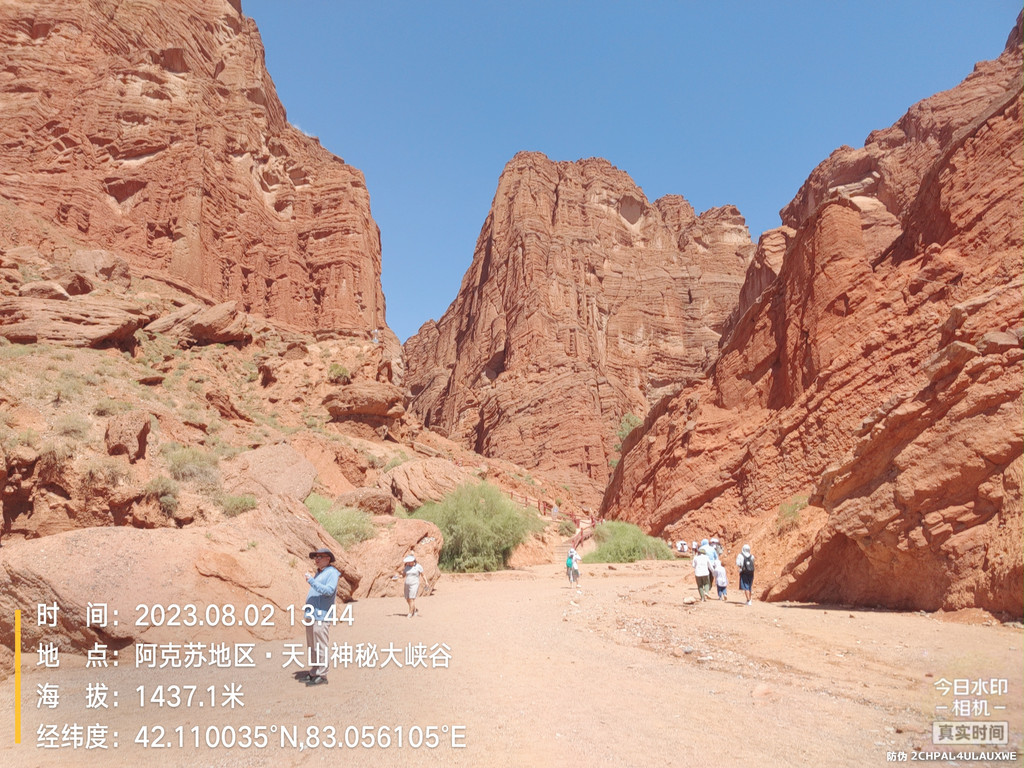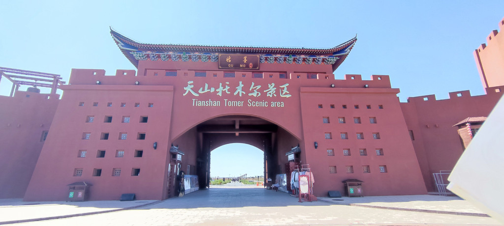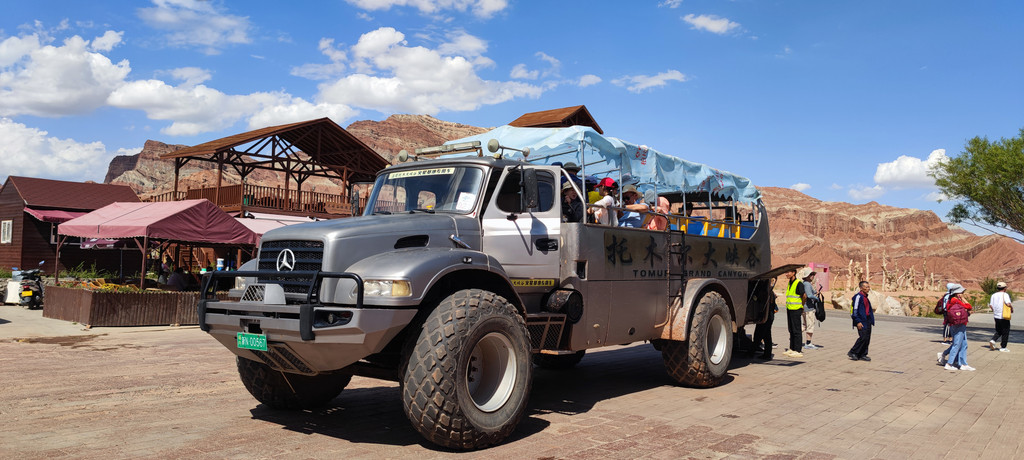 天山托木尔景区(温宿大峡谷)——生命之源。坐景区的区间车游览,区间车停靠几个站点,游客下车游览后,再排队坐区间车到下一站,区间车循环发车。