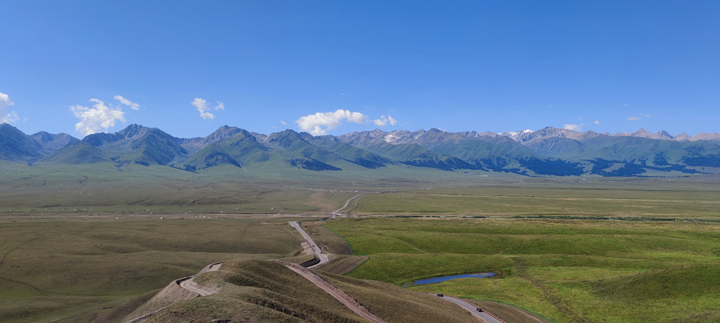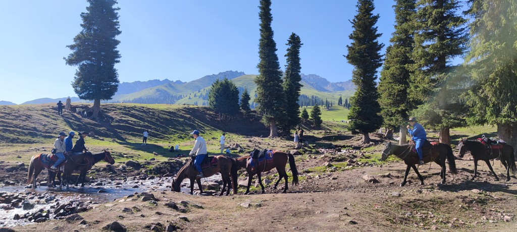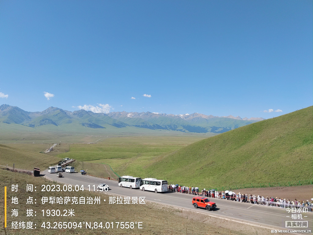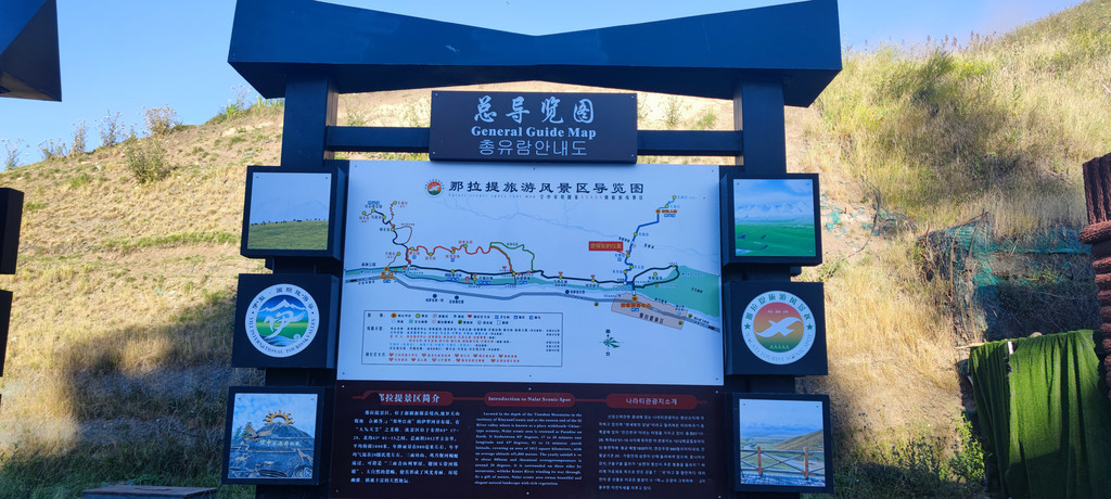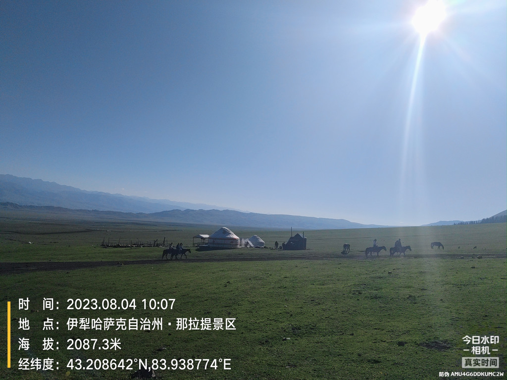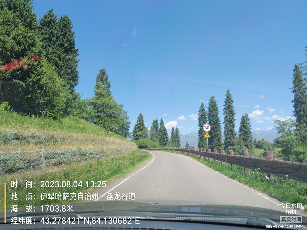 早晨8点半自驾进入那拉提草原景区。先后游览了:空中草原、河谷草原、盘龙谷道。下午16点左右出景区,走高速前往特克斯县。