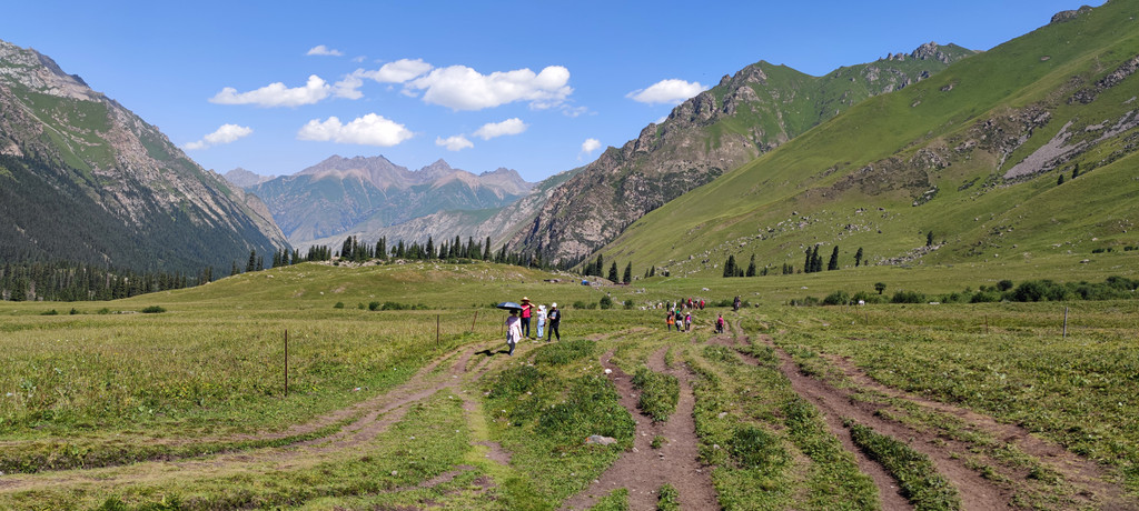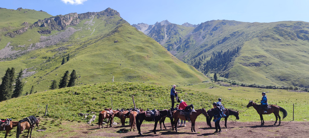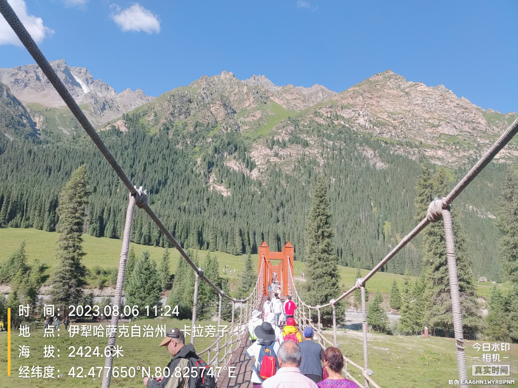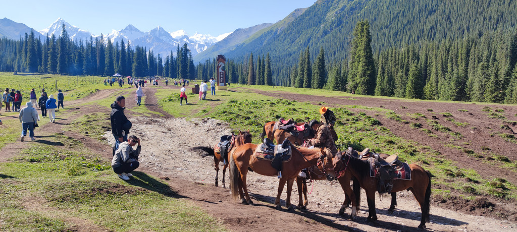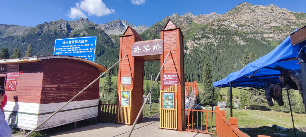 上午10点进入夏塔古道国家森林公园景区,先后排队坐区间车、电瓶车,11点半左右到达将军桥,从将军桥开始徒步,用了2个小时,经过了4个卡拉房子(补给点)到达景区徒步终点,可以近距离观看天山山脉第二高峰——汗腾格里峰,然后,原路返回,再排队坐电瓶车、区间车,出景区已经18点多了。