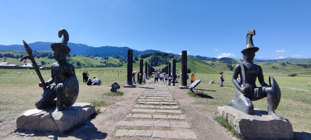 那拉提旅游区(河谷草原)——乌孙古迹(远处有4人在吊威亚)