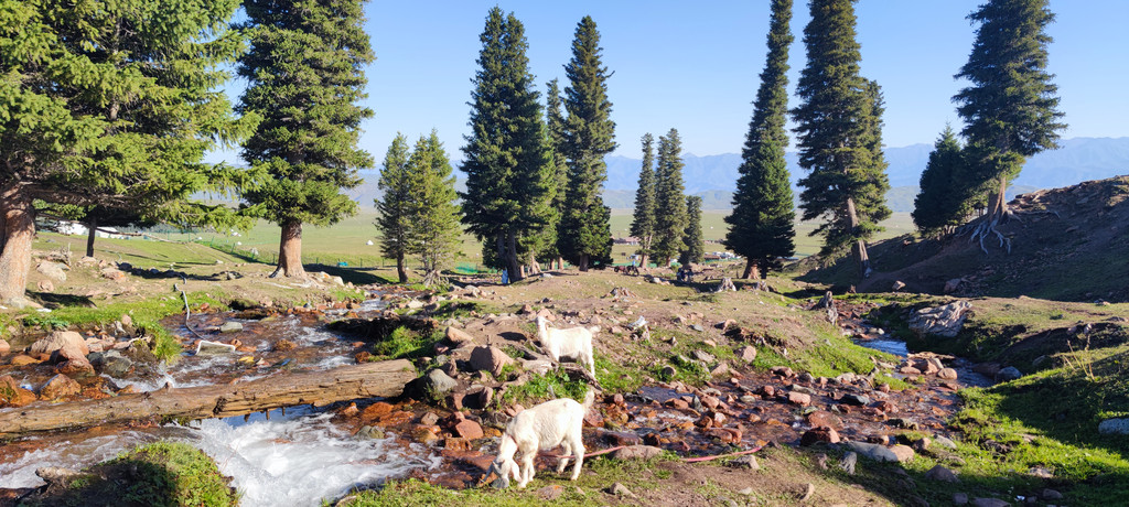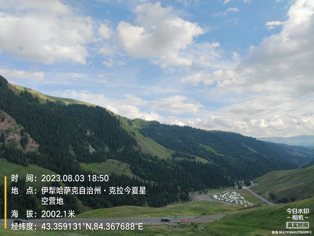 上午游览特克斯县的离街。下午出发走国道经过塞克云端草原(入口)、昭苏县,到达夏塔古道国家森林公园。