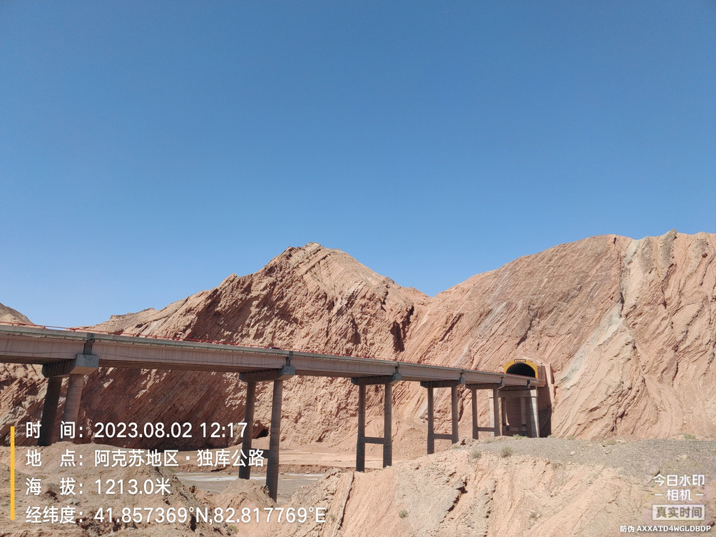 中午出发走吐和高速去往天山托木尔景区(温宿大峡谷),然后,继续走高速去库车市,晚上21点半左右到达库车市。吐和高速的阿克苏到库车段修路,要借道行驶,看到对向有两起3车连撞事故,造成大拥堵。