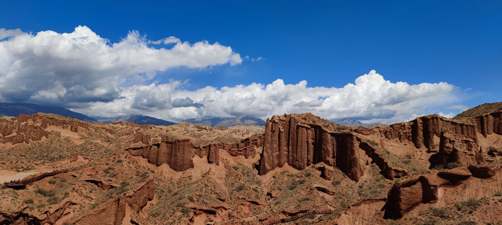 上午游览库车老街(热斯坦街)、库车大寺、库车王府。中午11点左右开始驶上独库公路南段,沿途游览了库车大峡谷(天山神秘大峡谷)、大小龙池,翻过铁力买提达坂。晚上20点赶在巴音布鲁克景区结束售票前,紧赶慢赶、非常幸运地登上最后一班景区的大巴(车上只有10人)。