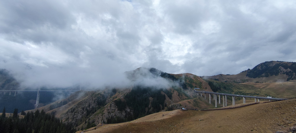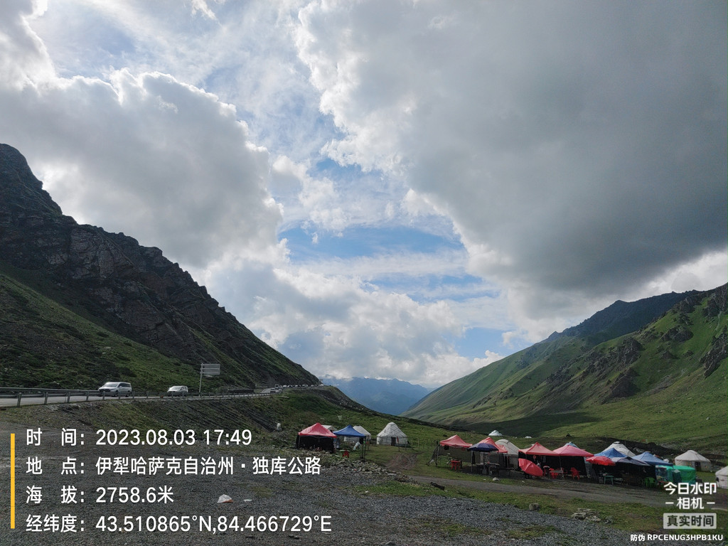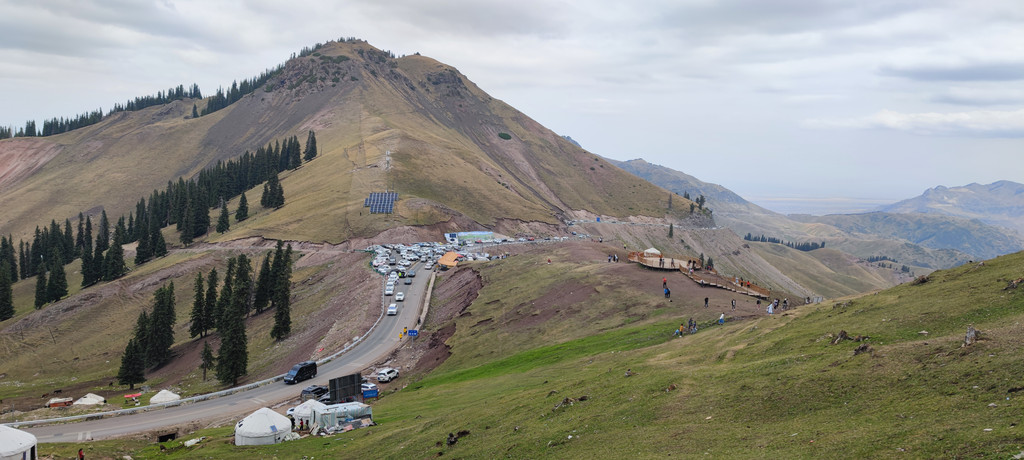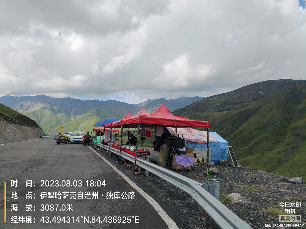 上午从巴音布鲁克景区出发,走独库公路中段前往乔尔玛服务区,然后返回,去往那拉提草原景区,其中,那拉提镇到乔尔玛服务区走了一个来回。独库公路(G217国道)没有堵车,拐入G218国道去往那拉提时遇到大堵车(修路单边放行)。