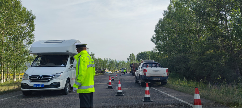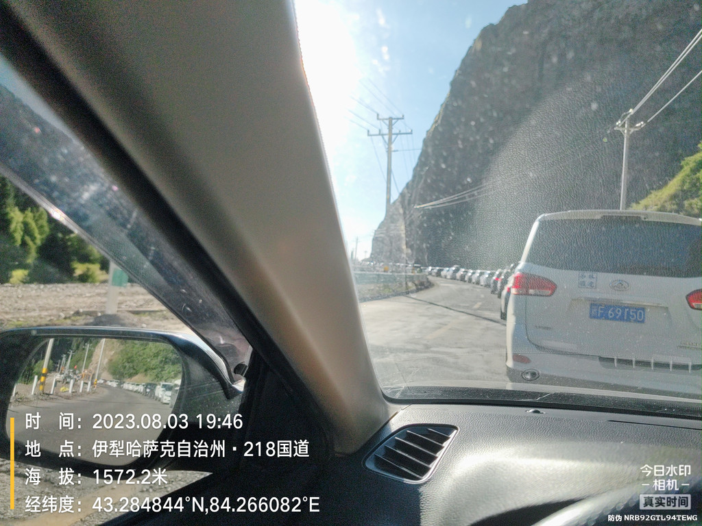 从独库公路转G218国道去往那拉提镇,由于修路遇到堵车。