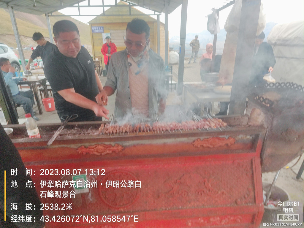 伊昭公路——白石峰观景台。这里的烤肉非常好吃,6元1串。